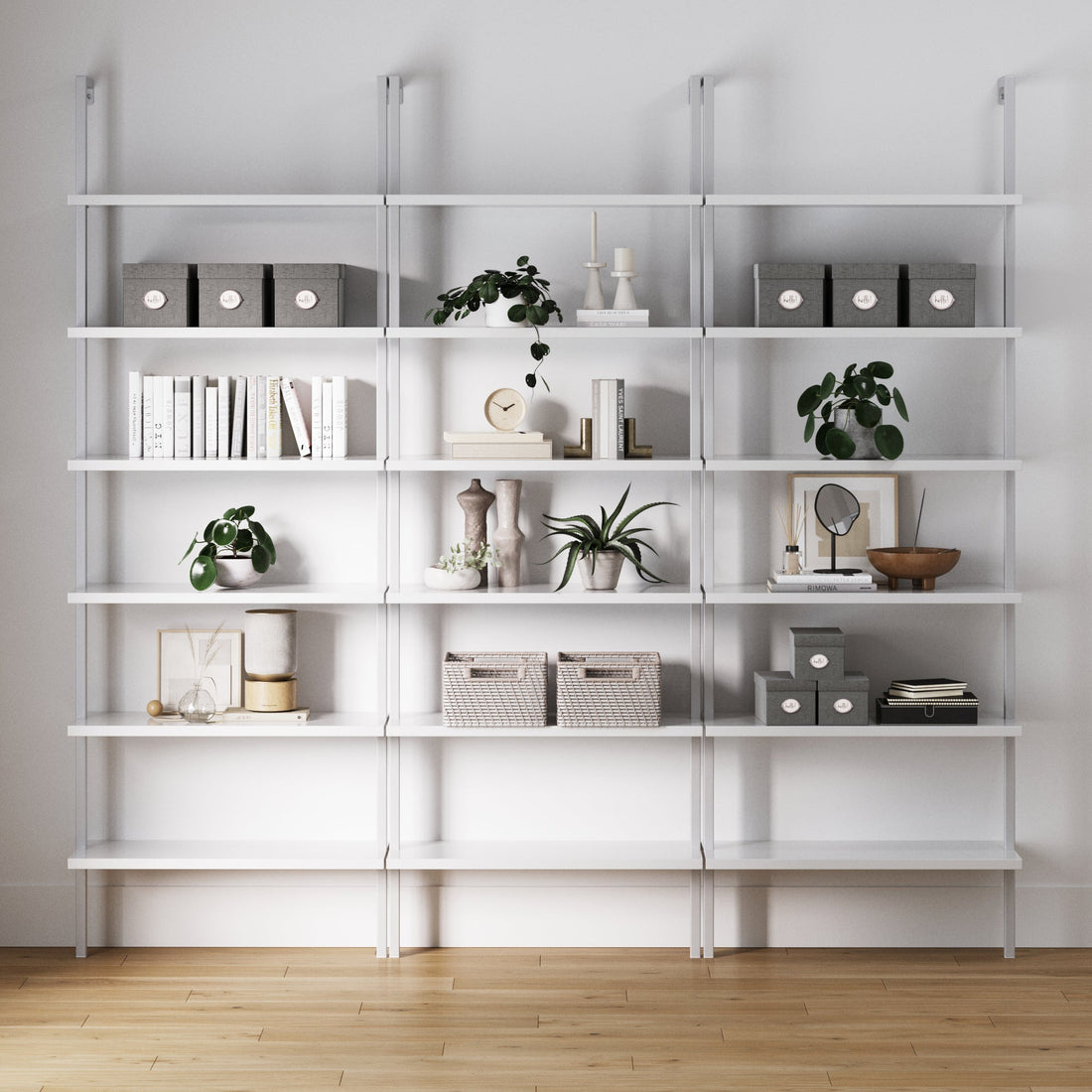 6-Shelf Ladder Bookshelf White (Set of 3)