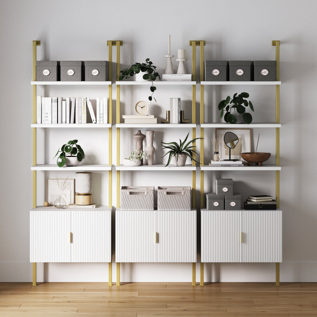Mid-Century Fluted Wall Bookshelves with Doors (Set of 4)