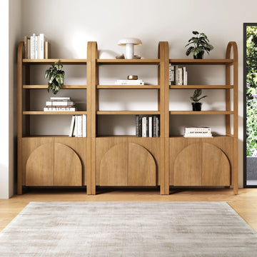 Wood Ladder Storage Bookshelves with Doors Oak Set of 3