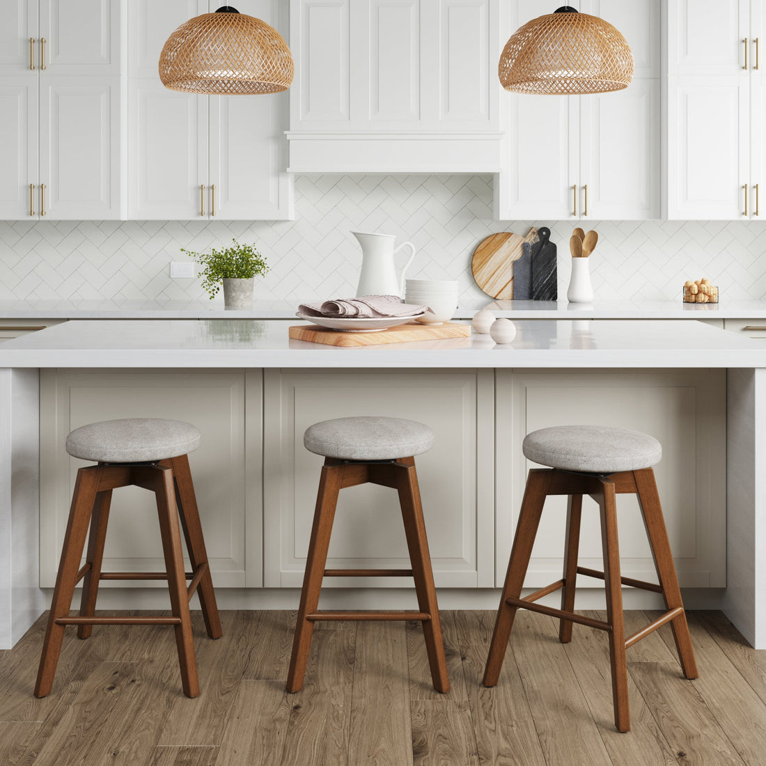 Wood Swivel Counter Height Bar Stools Brown (Set of 3)