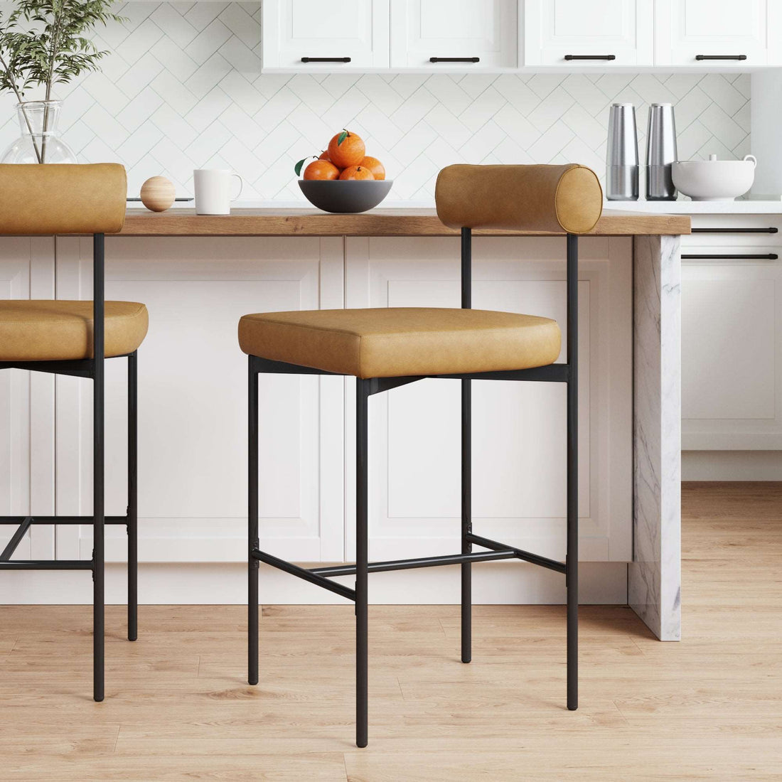 Wood Upholstered Counter Height Bar Stool Light Brown