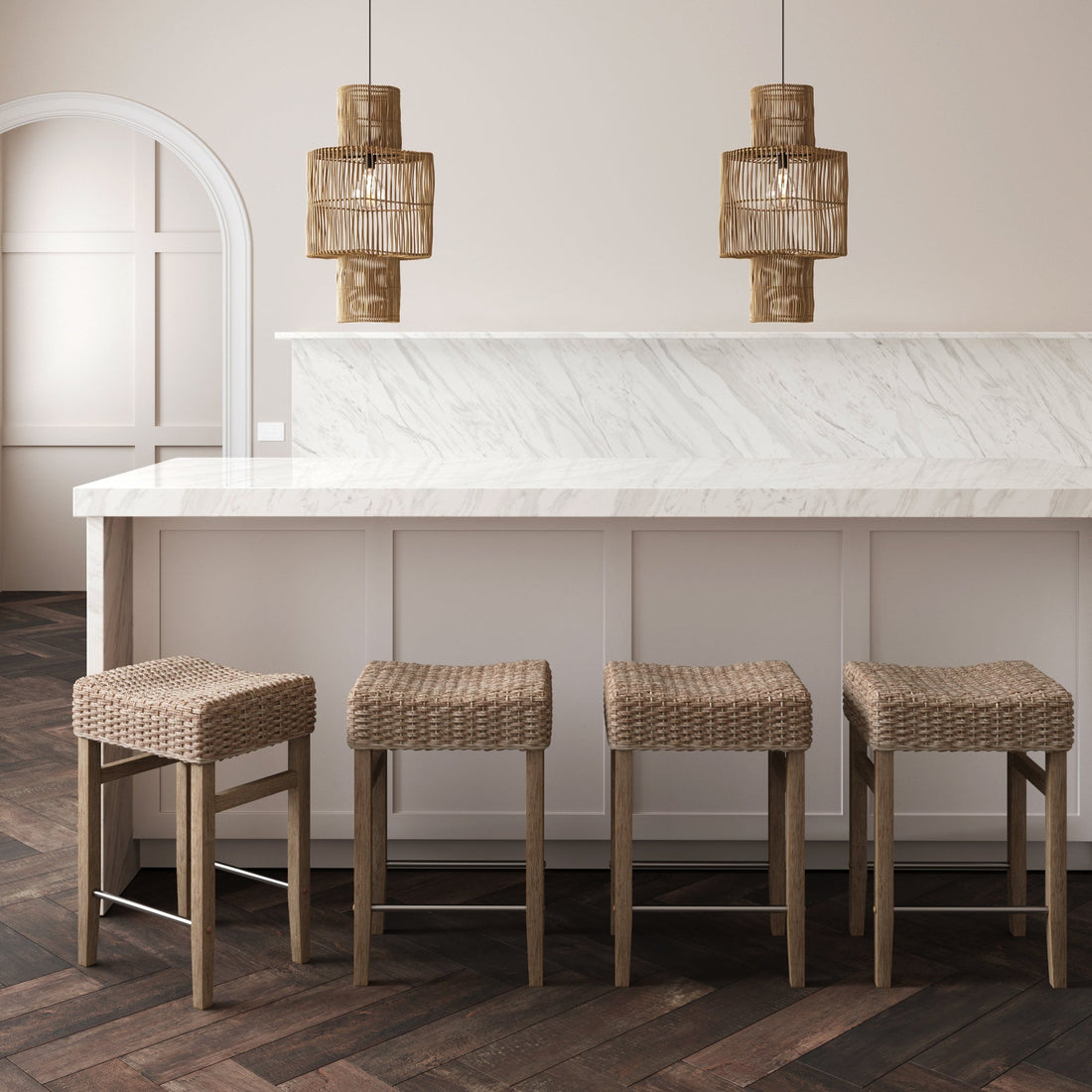 Seagrass Back Arched Footrest Counter Height Bar Stool (Set of 4)