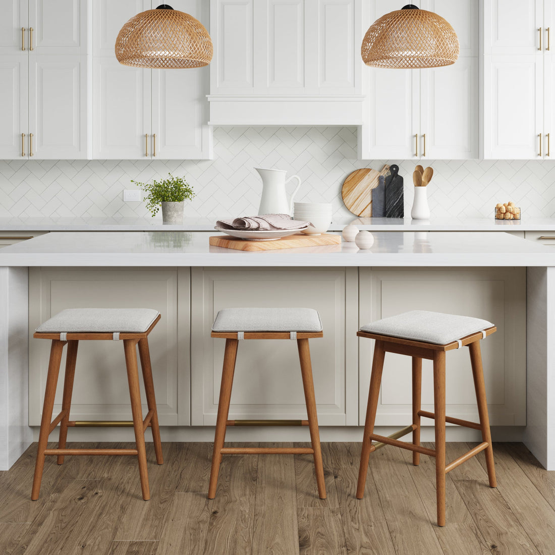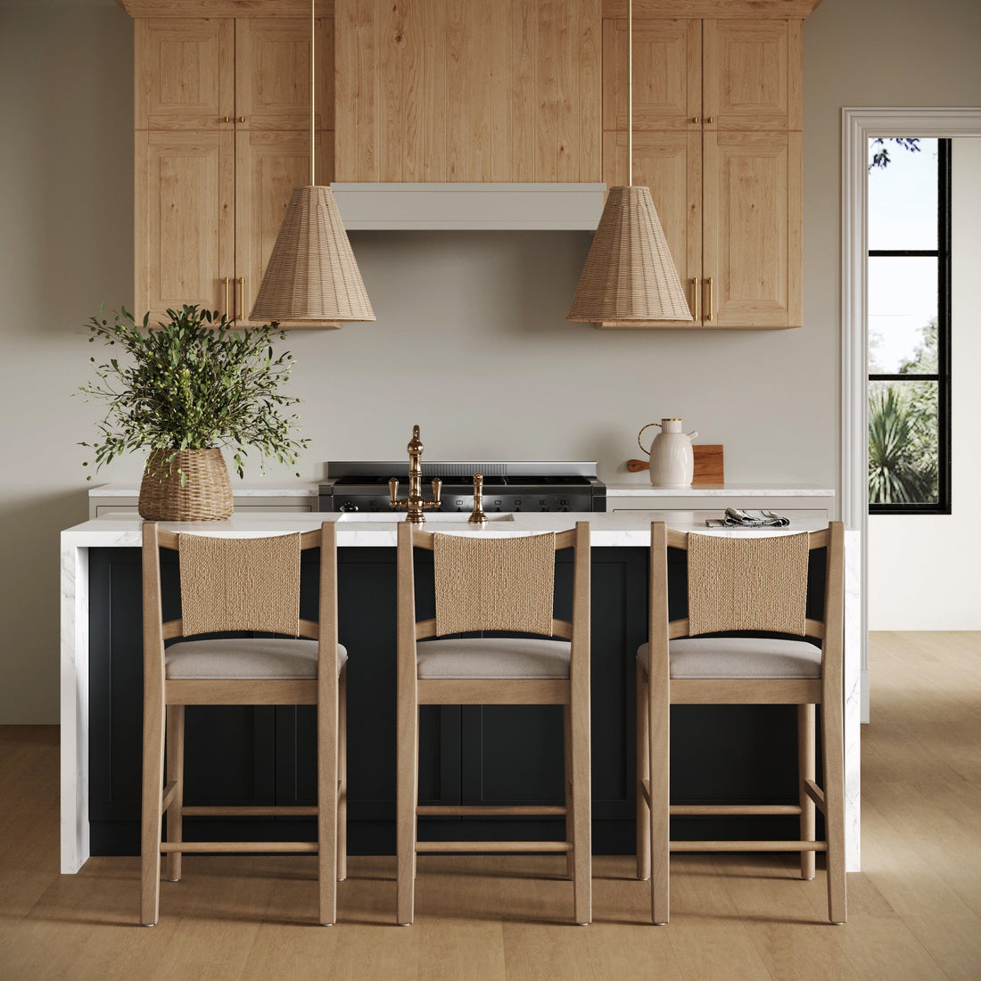 Boucle & Rattan Counter Height Bar Stools Warm Pine (Set of 4)