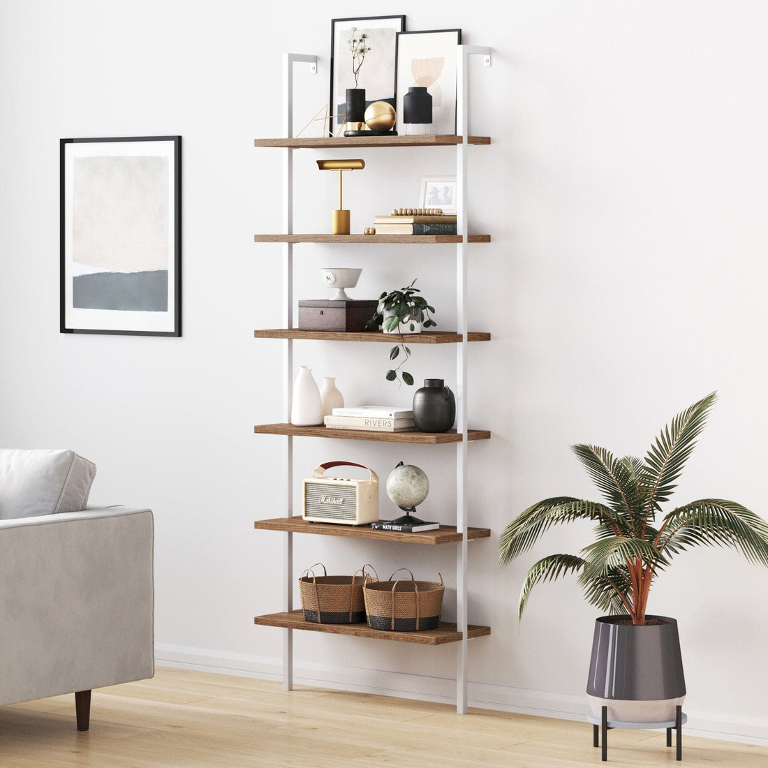 6-Shelf Ladder Bookshelf Nutmeg Matte Black