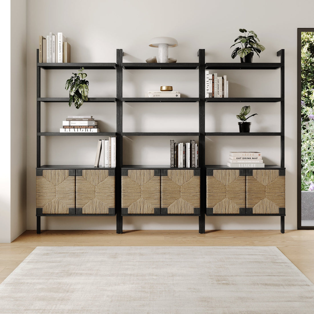 Seagrass Wall Bookshelves with Doors Black (Set of 3)