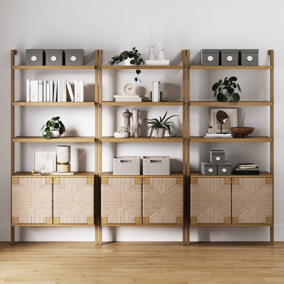 Arched Door Rattan Bookshelf with Doors Raw Oak (Set of 3)
