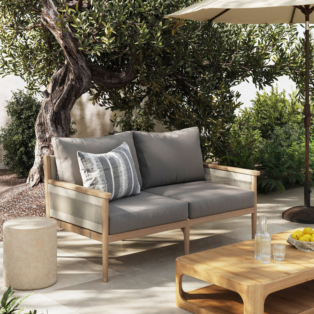 Outdoor Patio Wood Rope Loveseat Gray Oak