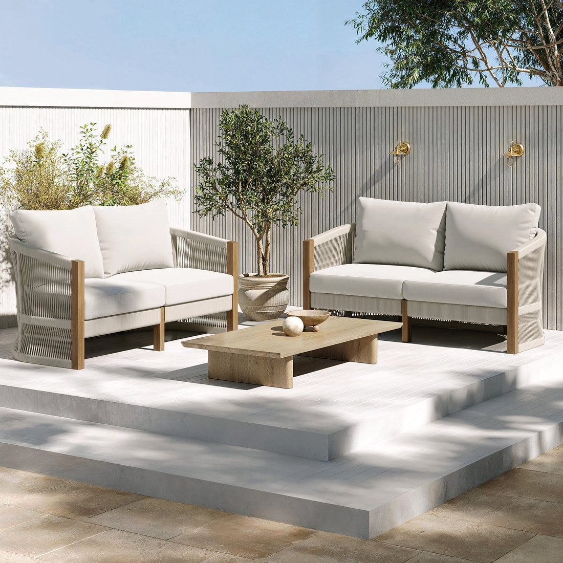 Outdoor Patio Wood Rope Loveseats (Set of 2)
