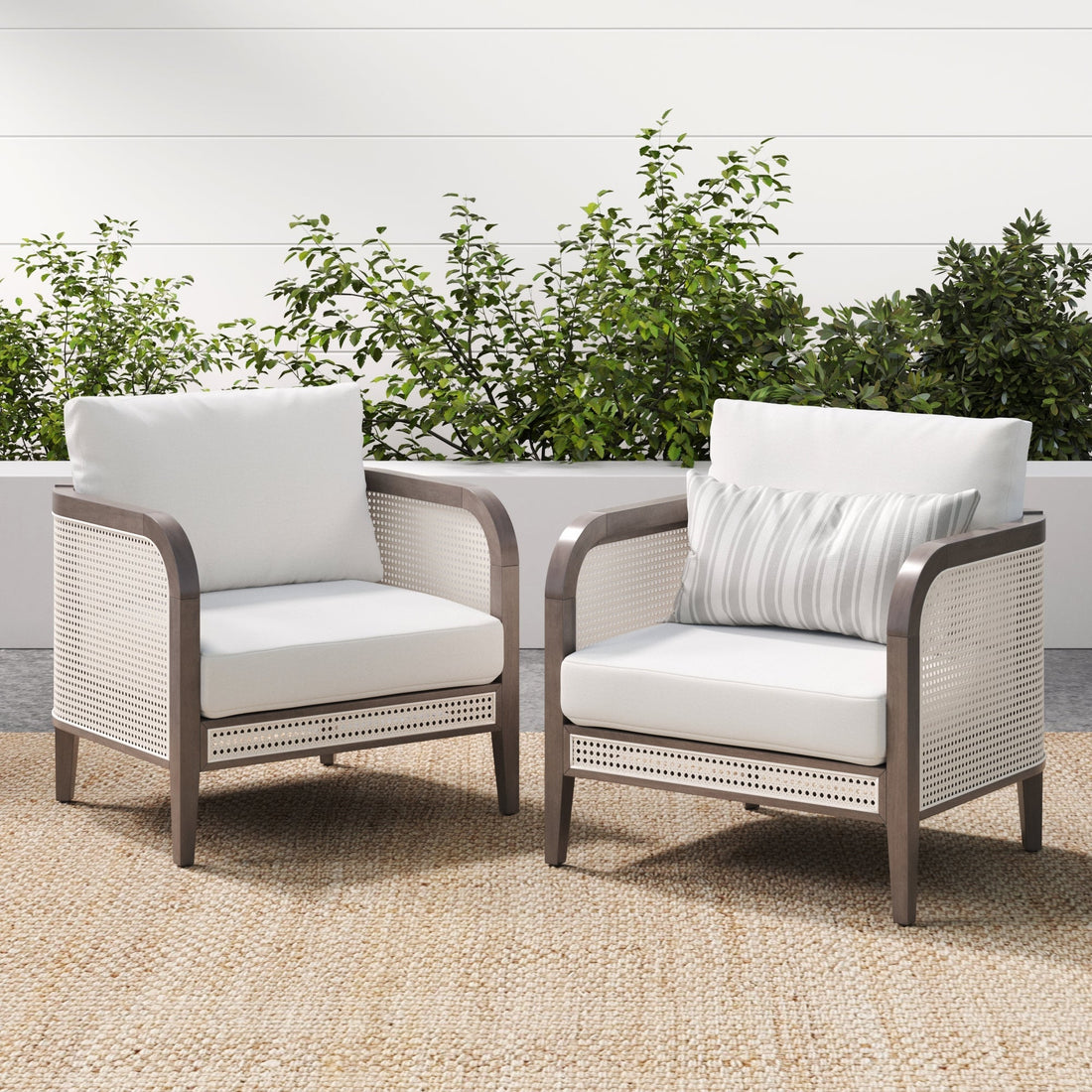Outdoor Wood & Rattan Patio Arm Chairs Gray Oak (Set of 2)