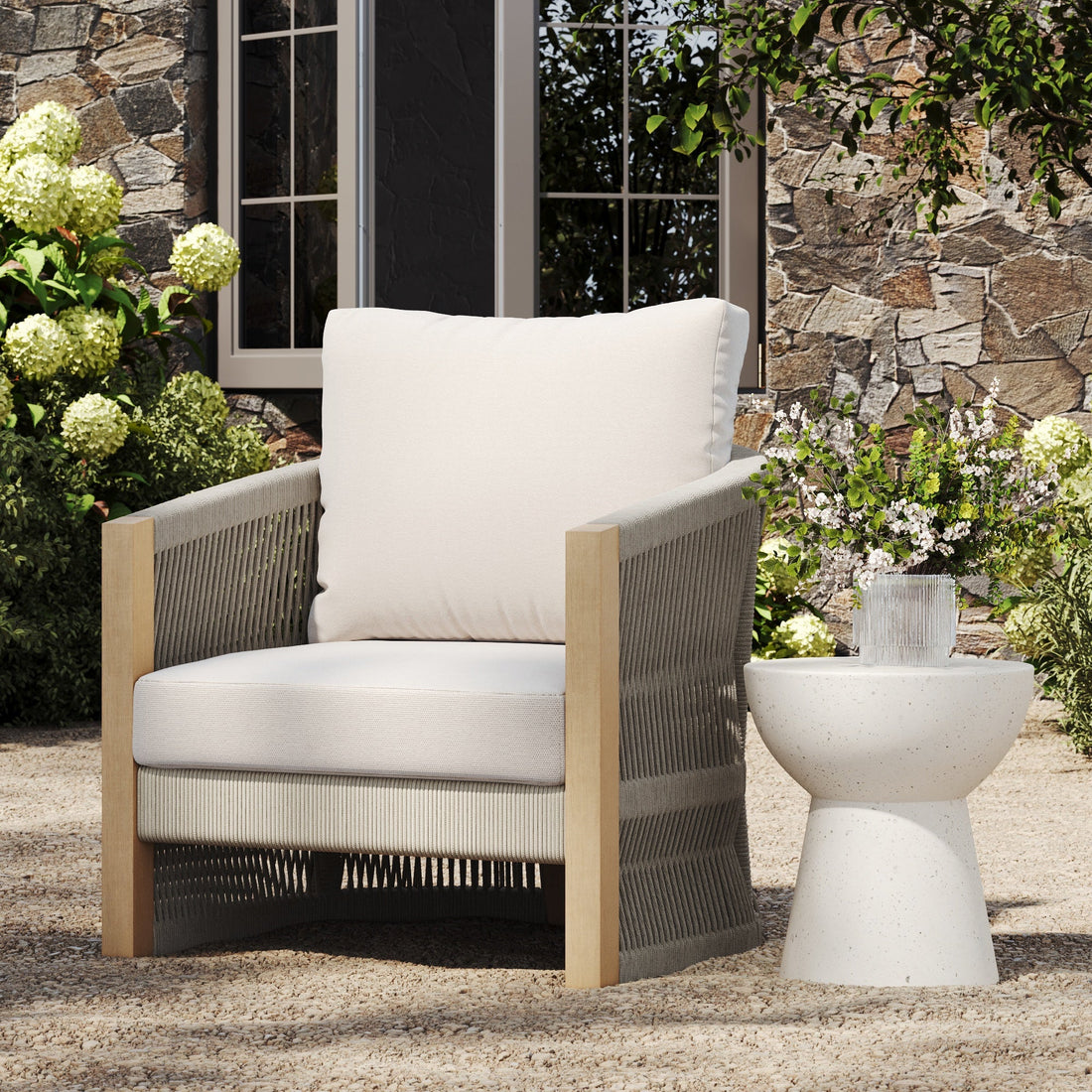 Outdoor Wood Rope Patio Arm Chair Ash White