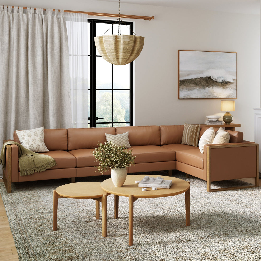 Leather 5-Seat Wood Frame Sectional Sofa Couch Camel