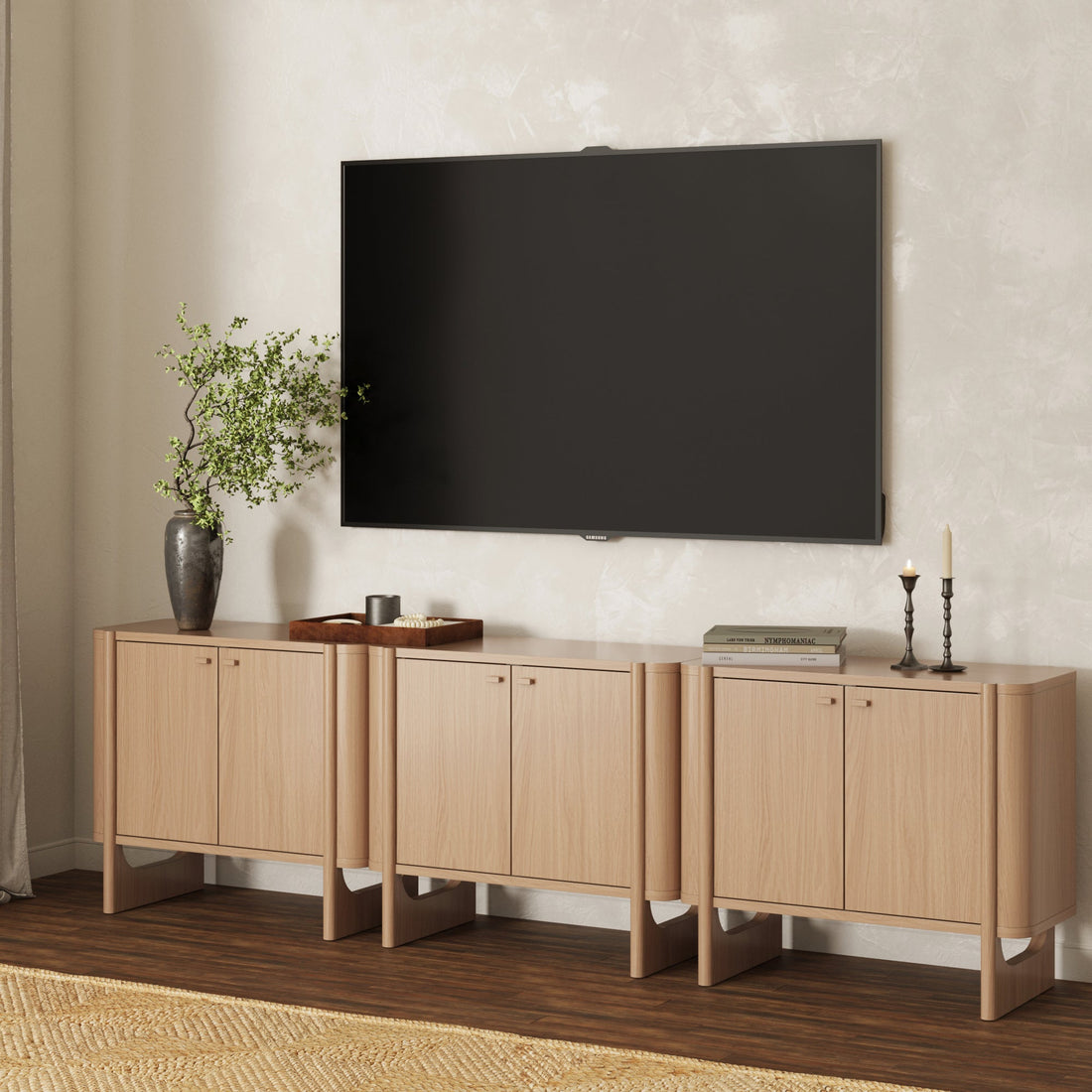 Mid-Century Modern Solid Wood Accent Cabinet or TV Stand Raw Oak (Set of 3)