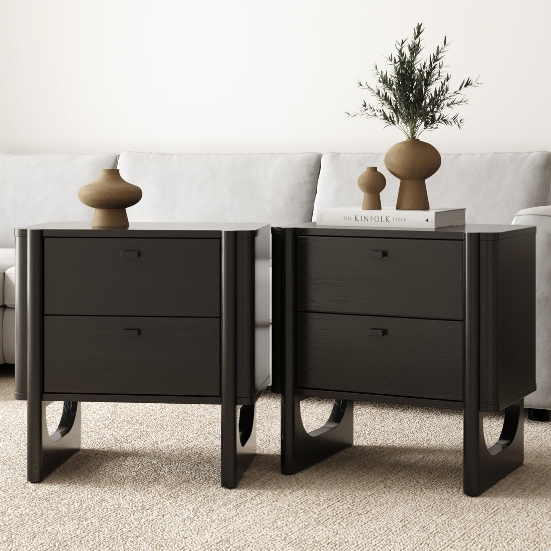 Mid Century Modern 2-Drawer Solid Wood Nightstand Black (Set of 2)