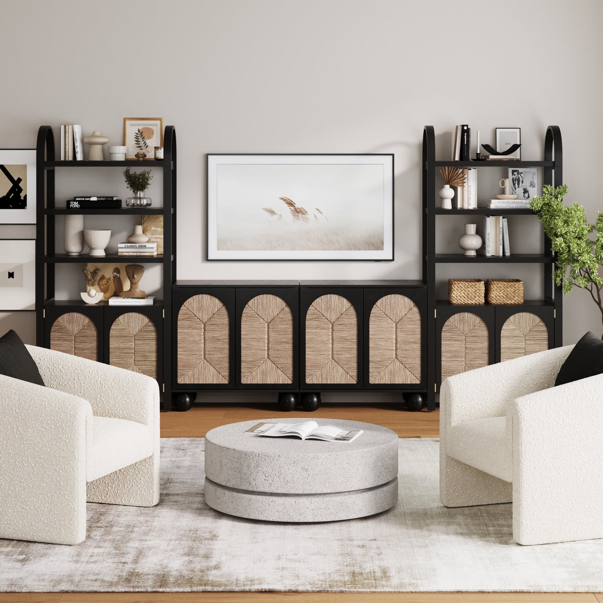 Boho Seagrass Arched Bookshelf Black (Set of 2)