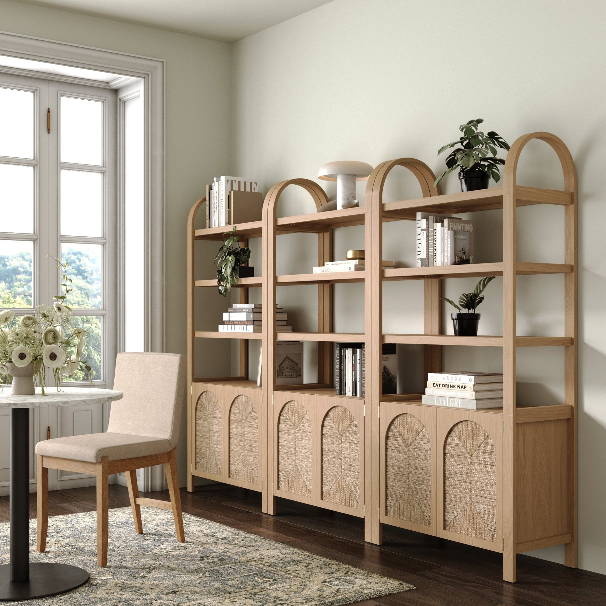Boho Seagrass Arched Bookshelf Raw Oak (Set of 3)