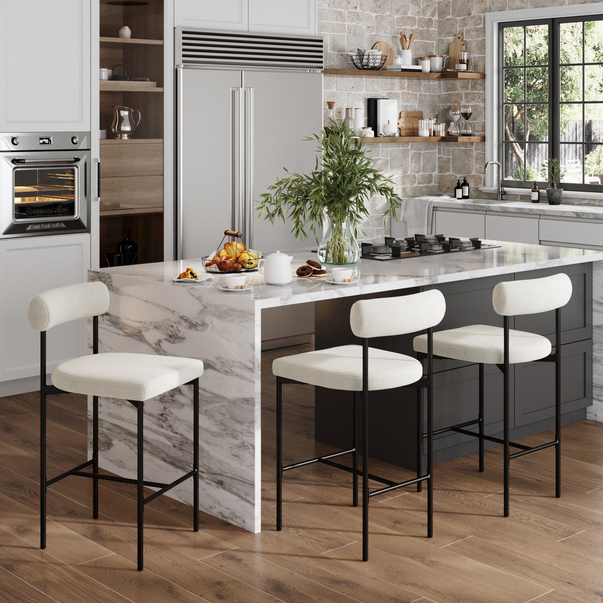 Boucle Counter Height Bar Stools (Set of 3)
