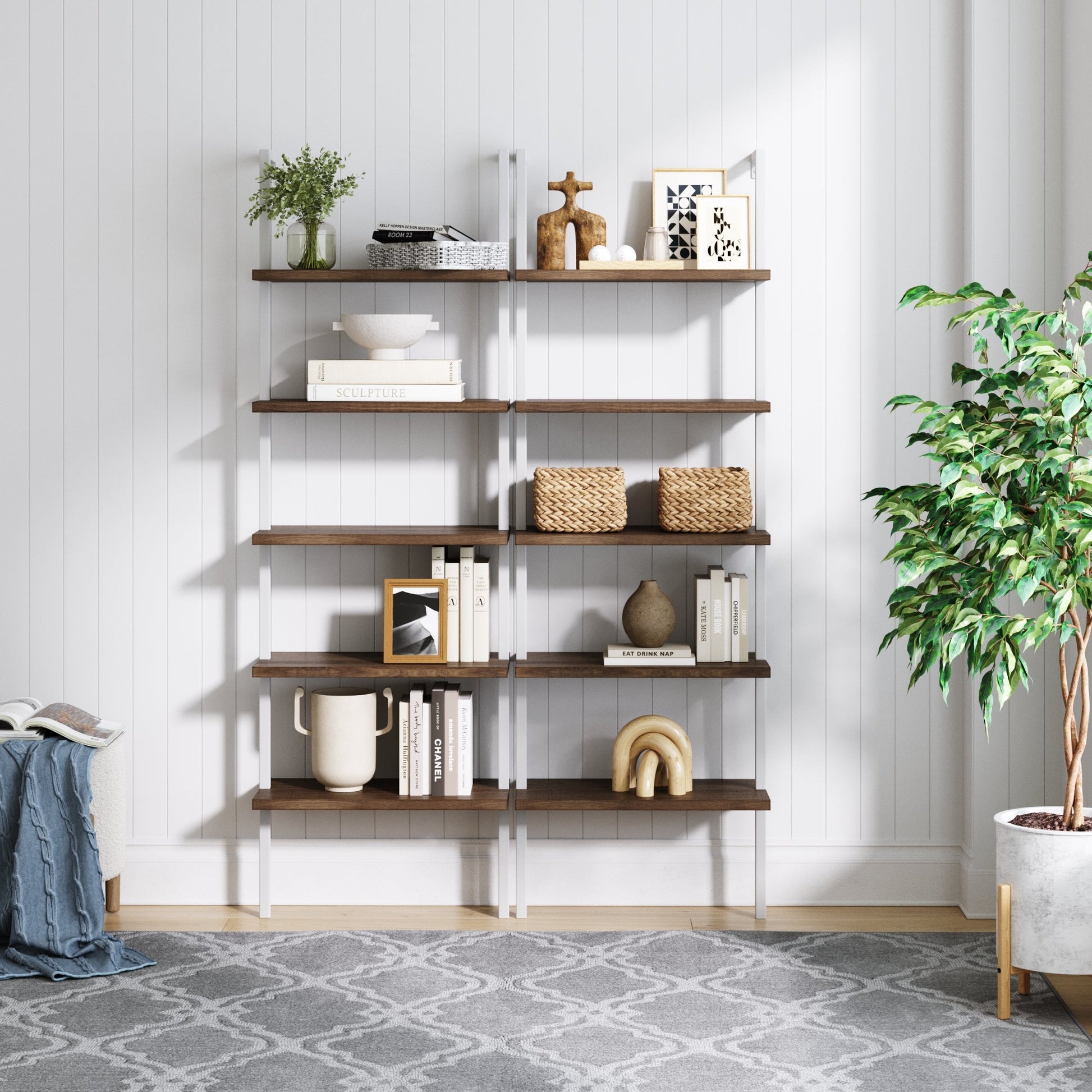 Ladder Bookshelf Oak Matte White Set of 2