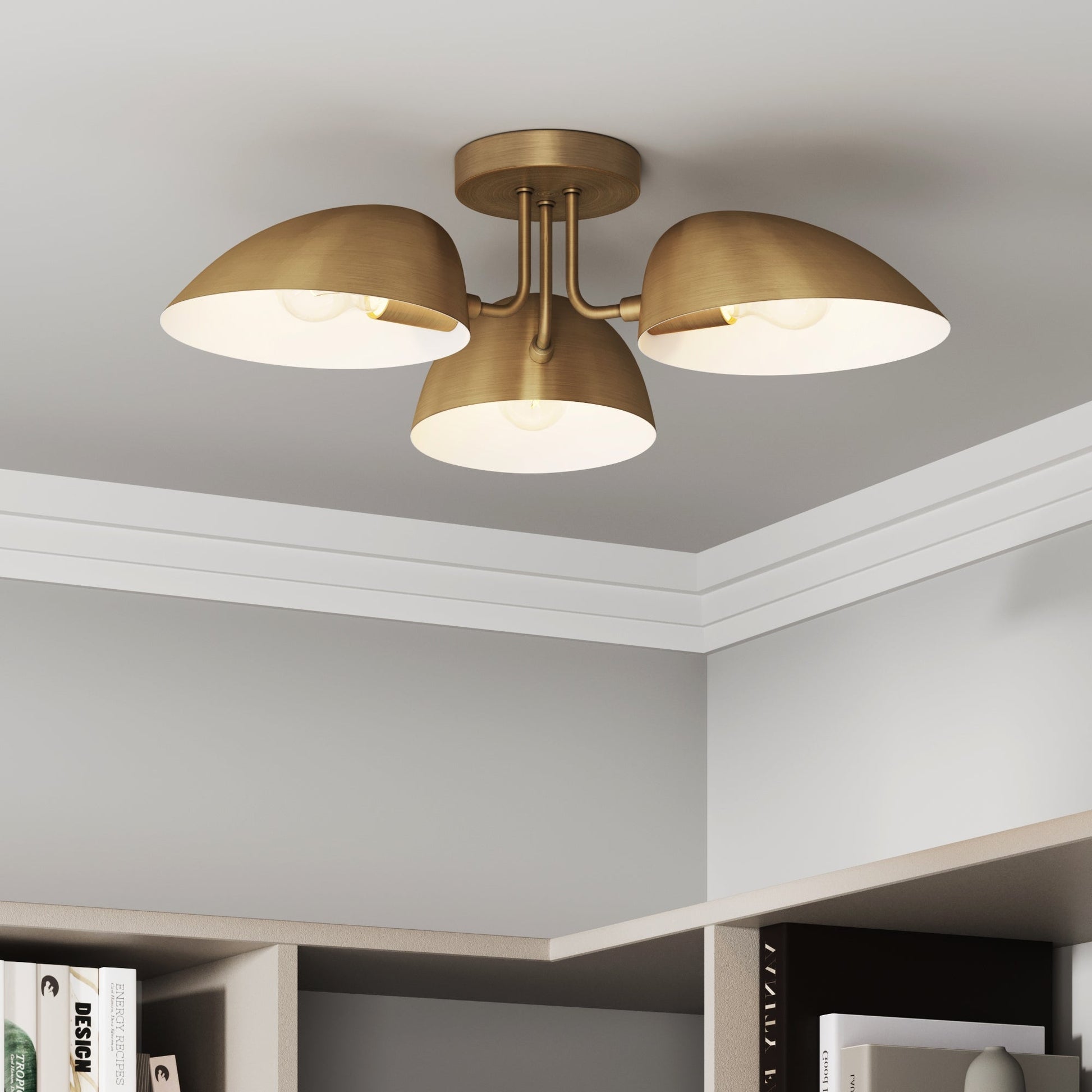 Metal 3-Arm Flush Mount Ceiling Light Brass