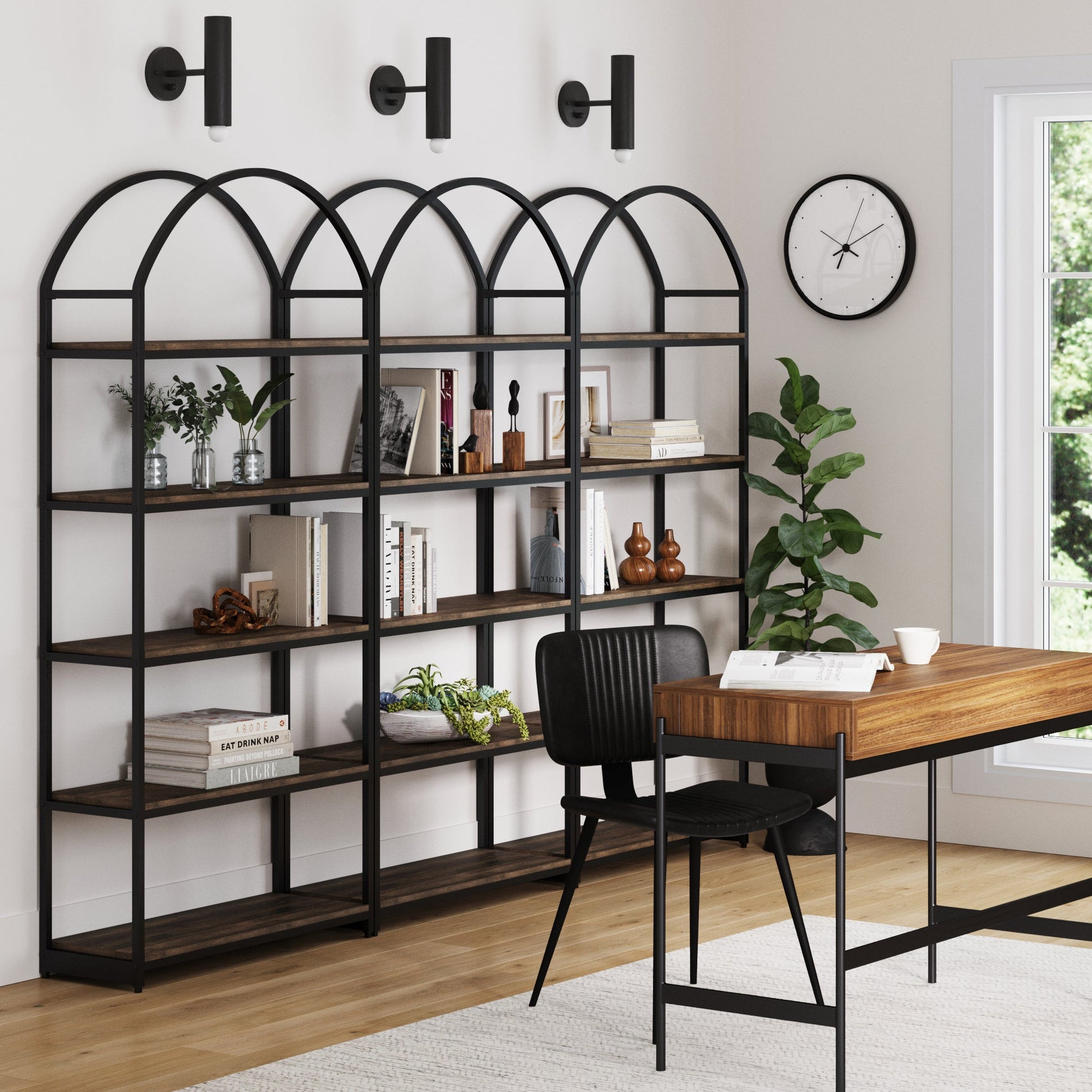 Metal 5-Shelf Arched Bookshelves Black (Set of 3)
