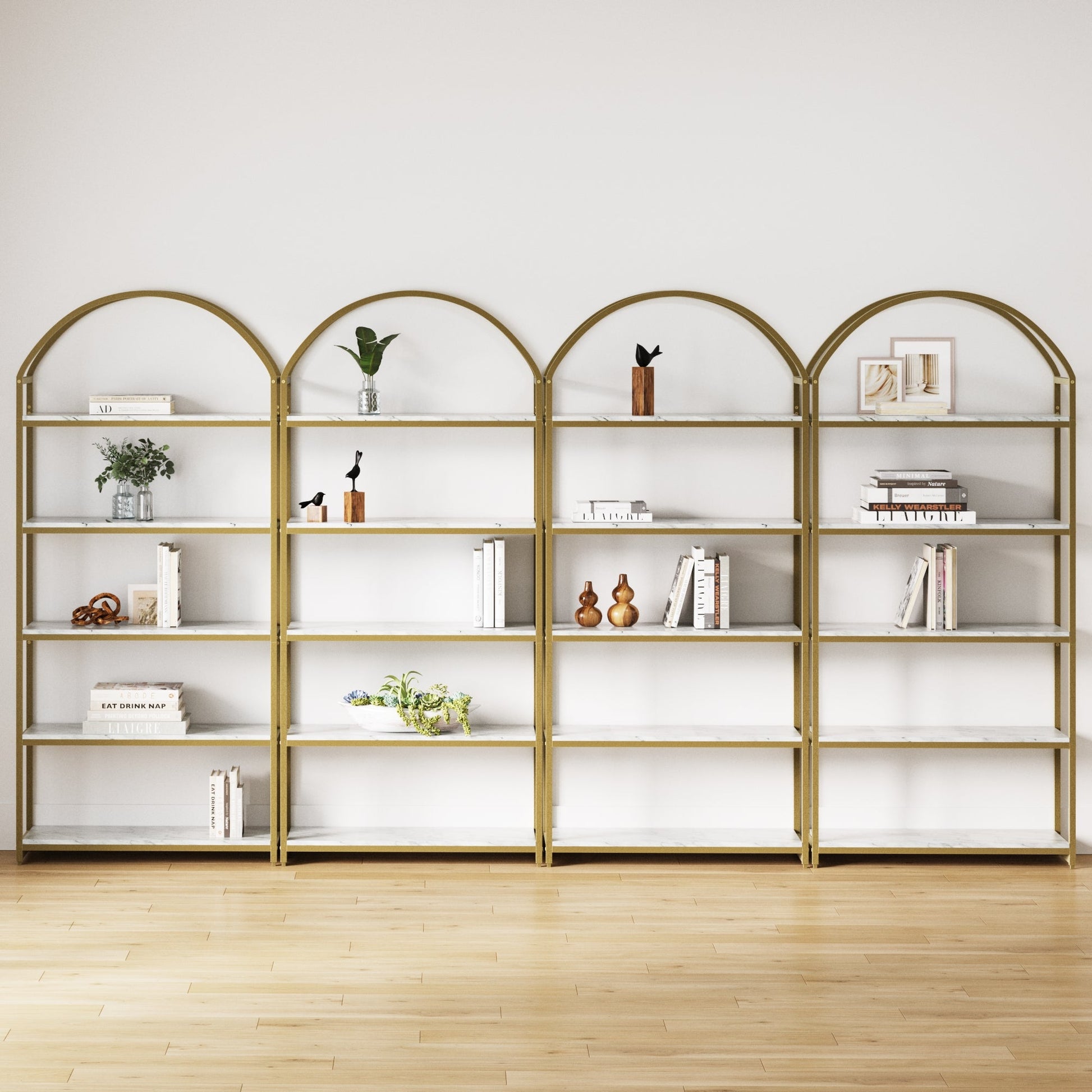 Metal 5-Shelf Arched Bookshelves Gold (Set of 4)