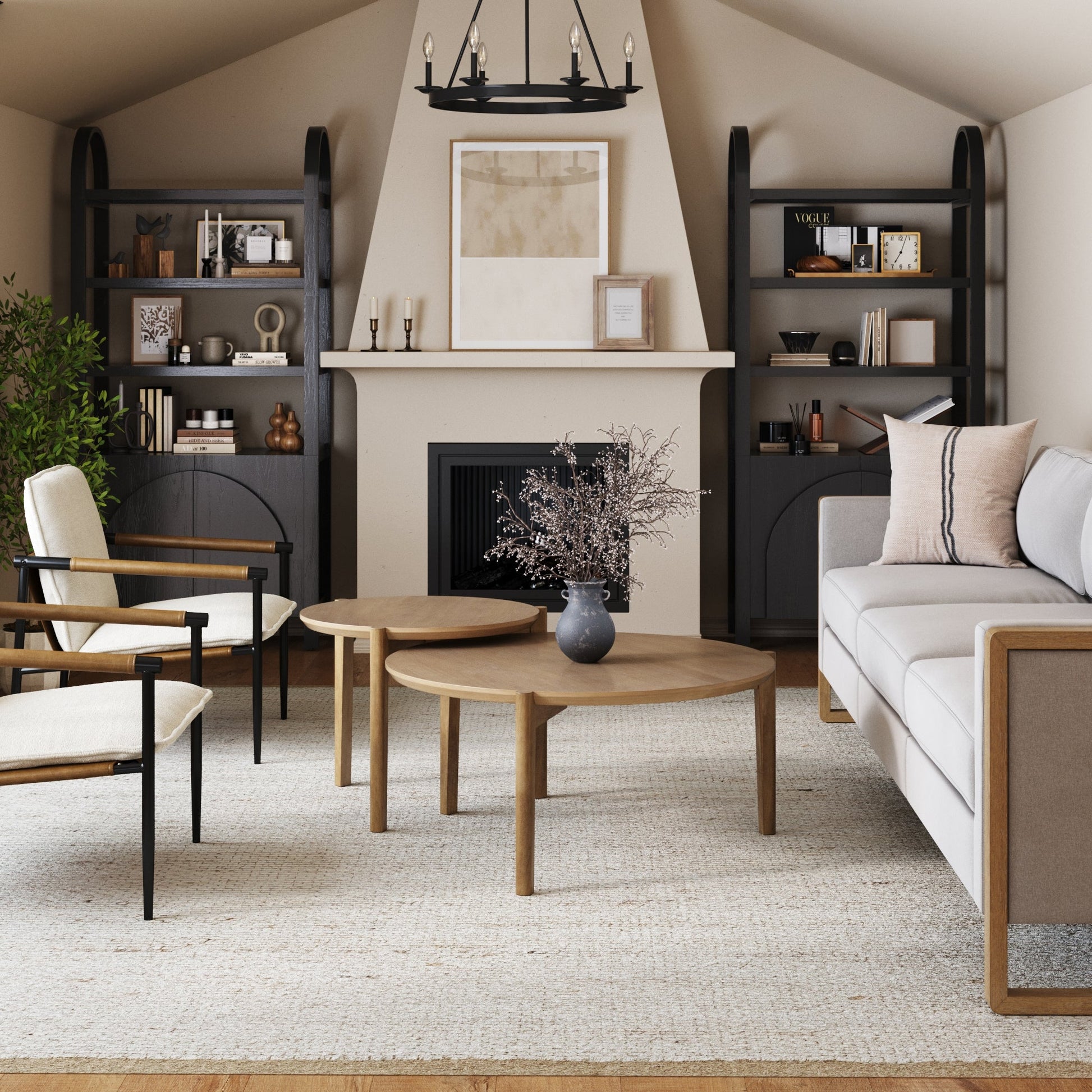 Elevate your living space with the Iris Bookshelf. Featuring a solid wood frame and quality wood veneer, this bookshelf boasts unique arched door details that double as door pulls. With a combination of open shelving and enclosed storage, it offers ample space for your belongings. The adjustable interior shelf provides flexibility, and the adjustable leveling floor protectors ensure stability. Whether you use it by itself as a bold statement piece or multiple units side-by-side, the Iris Bookshelf brings bohemian elegance to any room.
