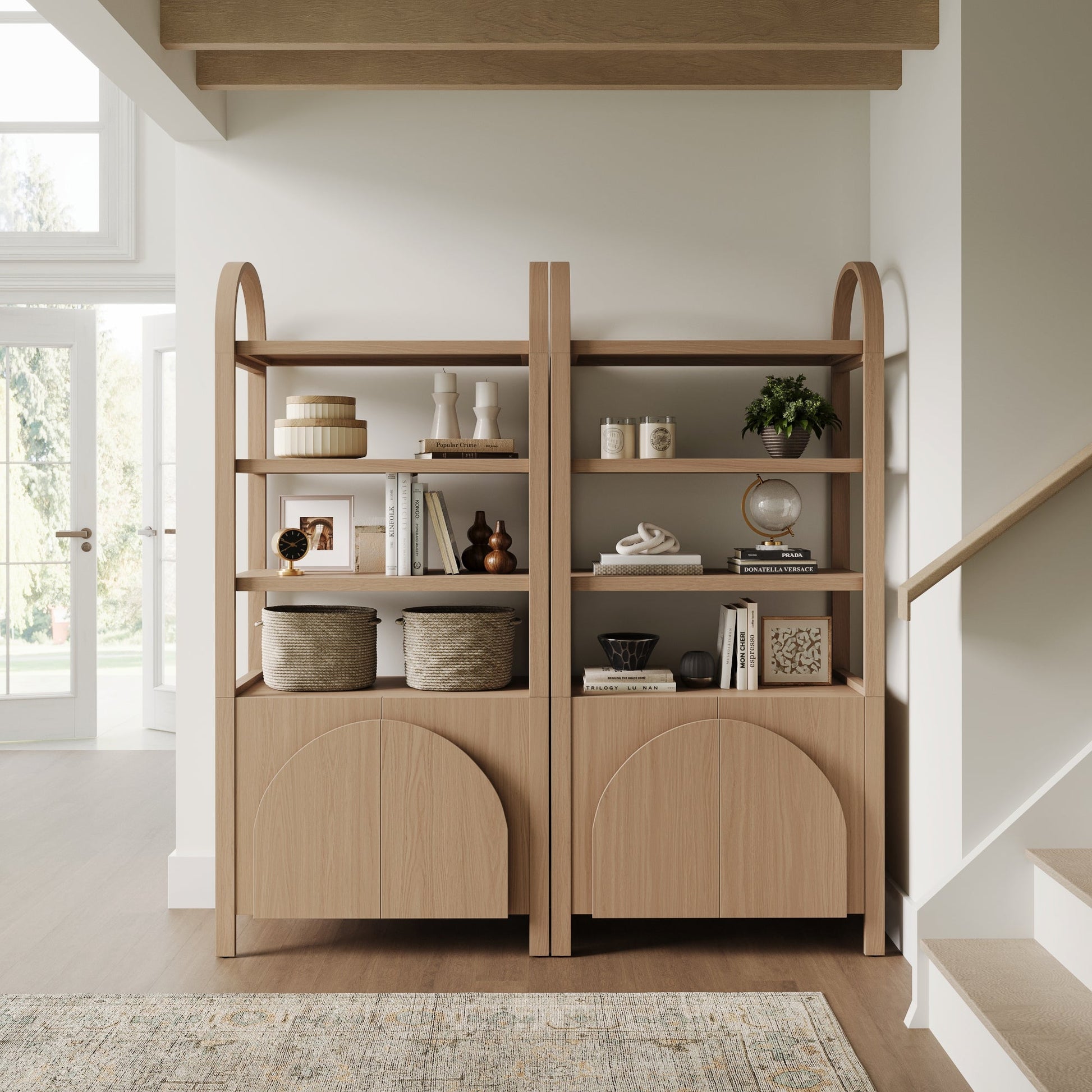 Mid-Century Arched Door Bookshelf with Doors Raw Oak (Set of 2)