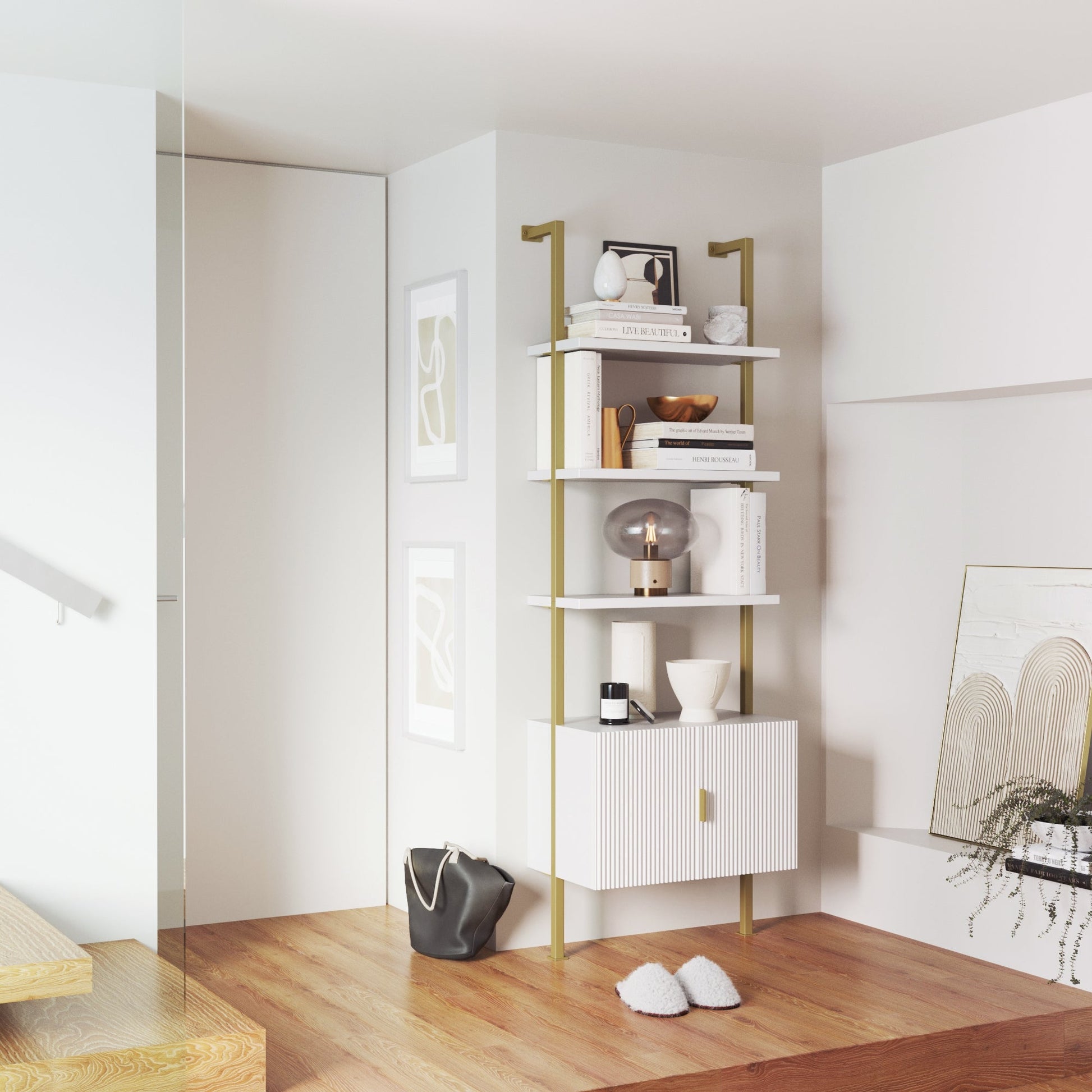 Mid-Century Fluted White Wall Bookshelf