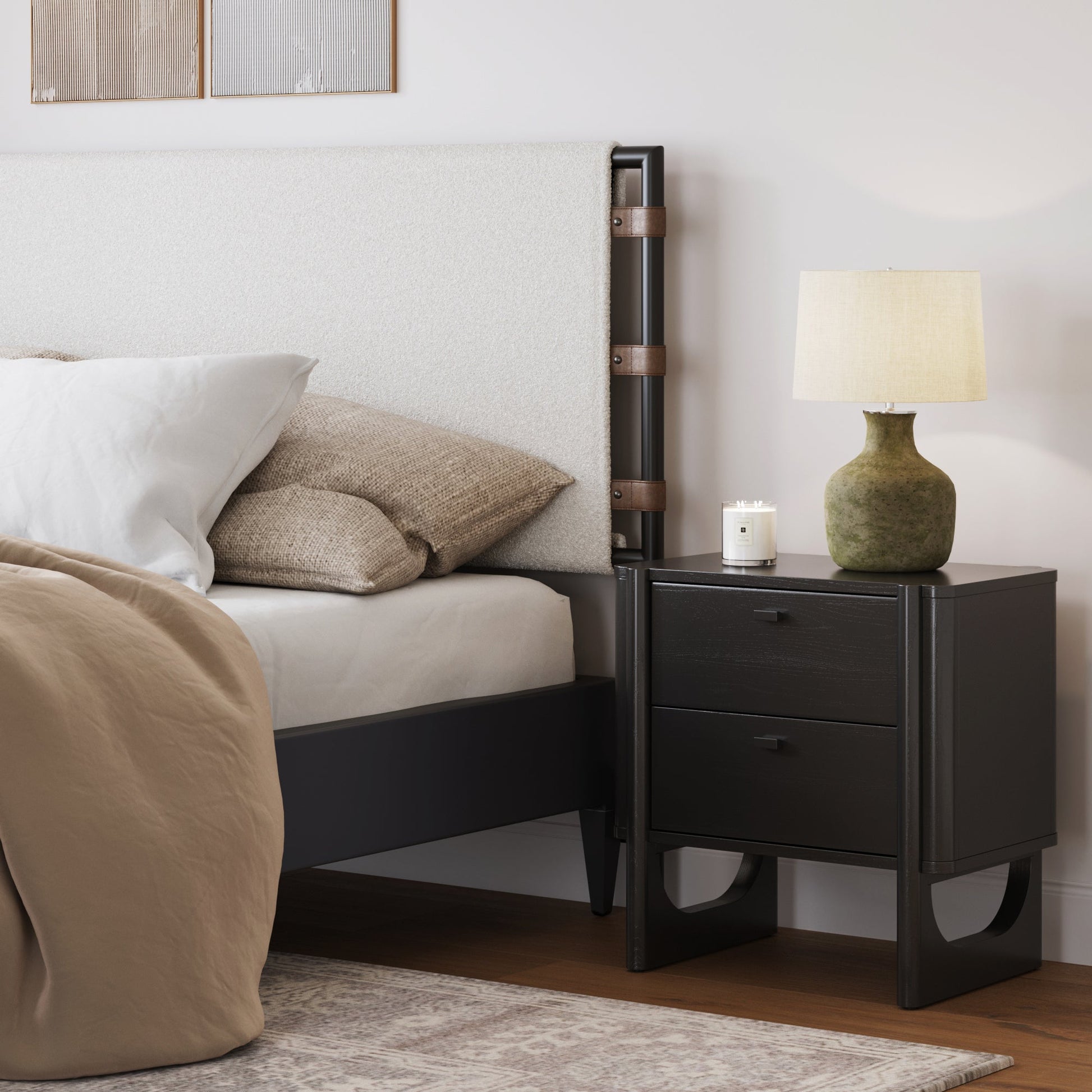 Mid Century Modern 2-Drawer Solid Wood Nightstand Black