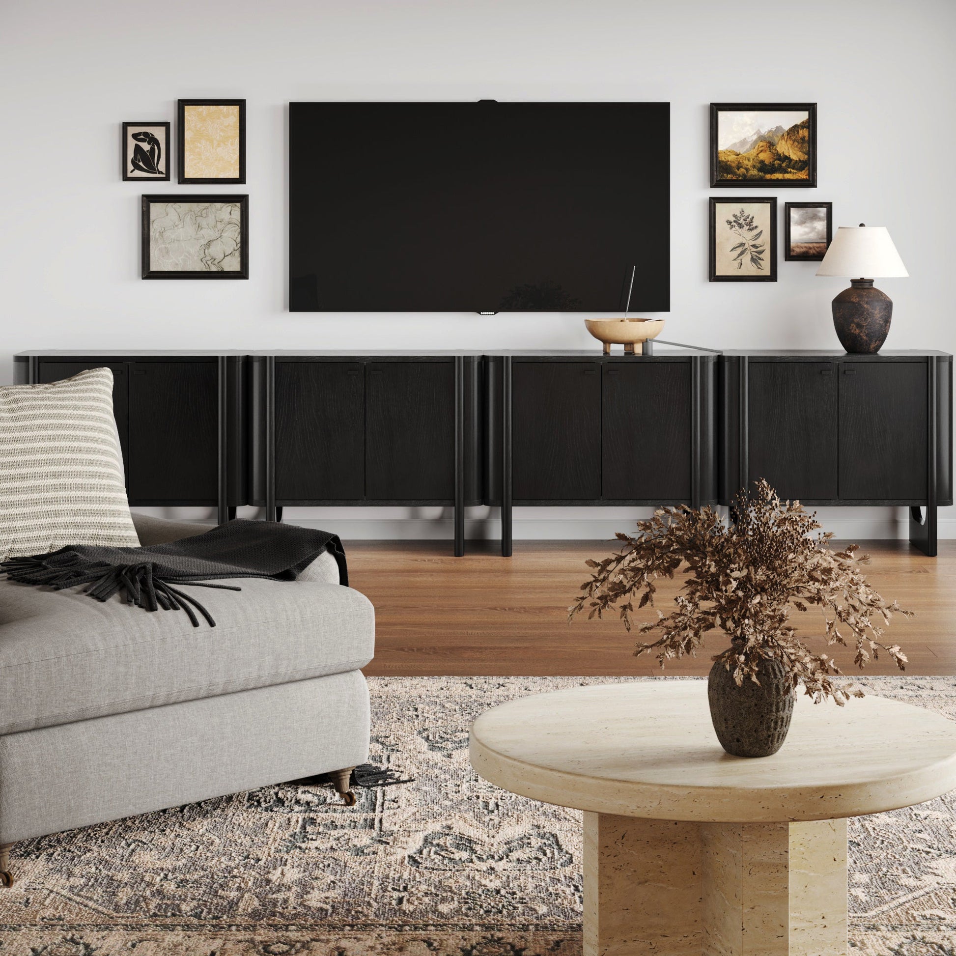 Mid-Century Modern Solid Wood Credenza TV Console Black (Set of 4)