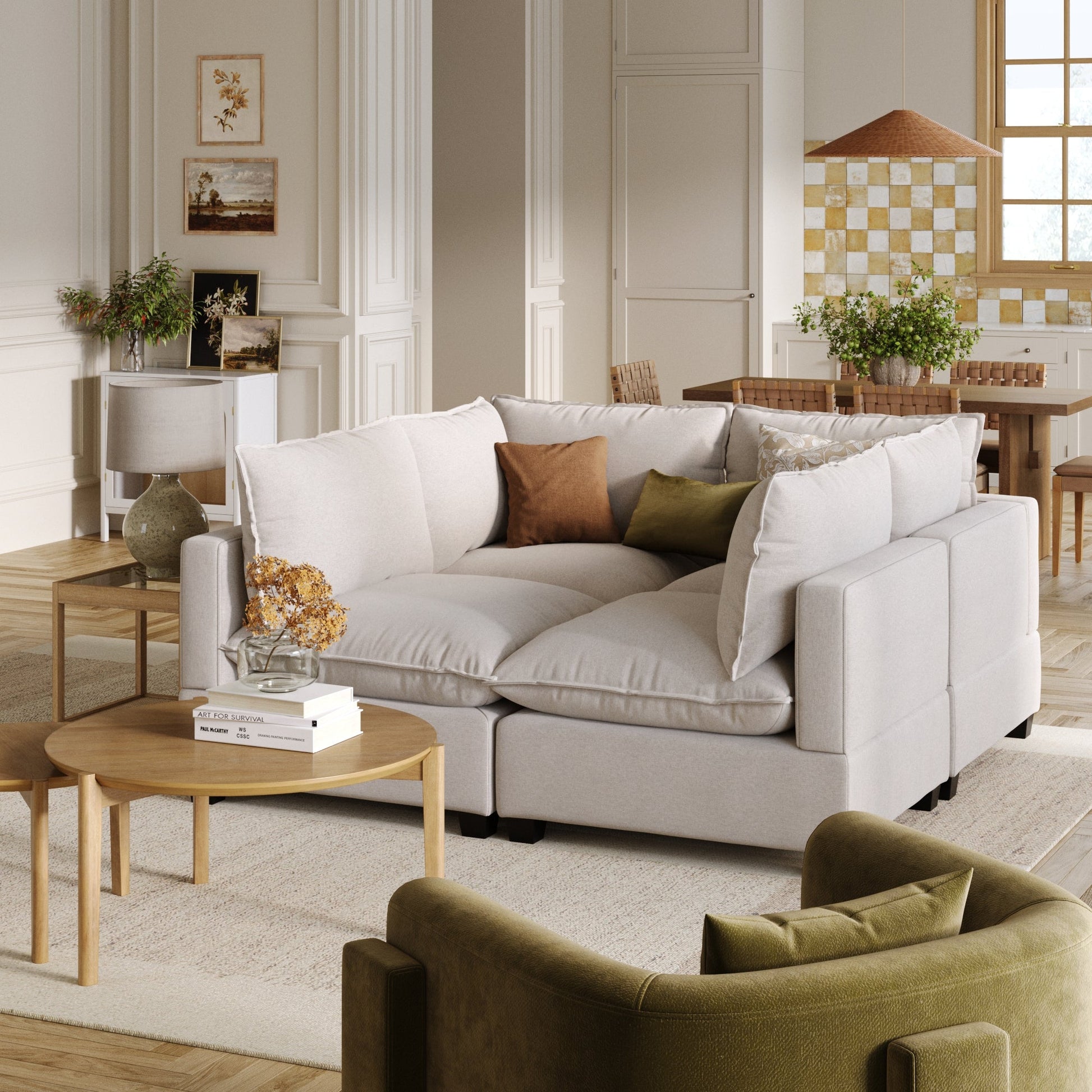 Soft Fabric 4-Piece Cloud Pit Sofa Couch Gray