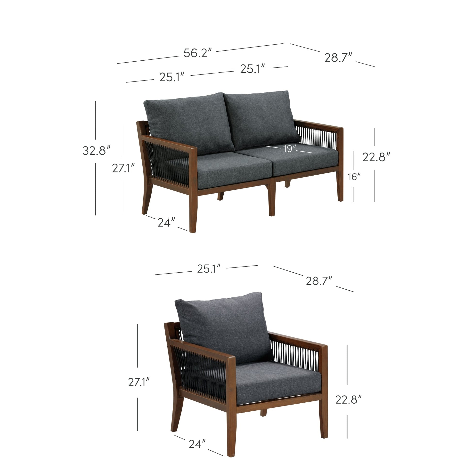 Outdoor 4 Piece Wood Patio Set Loveseats and Chairs