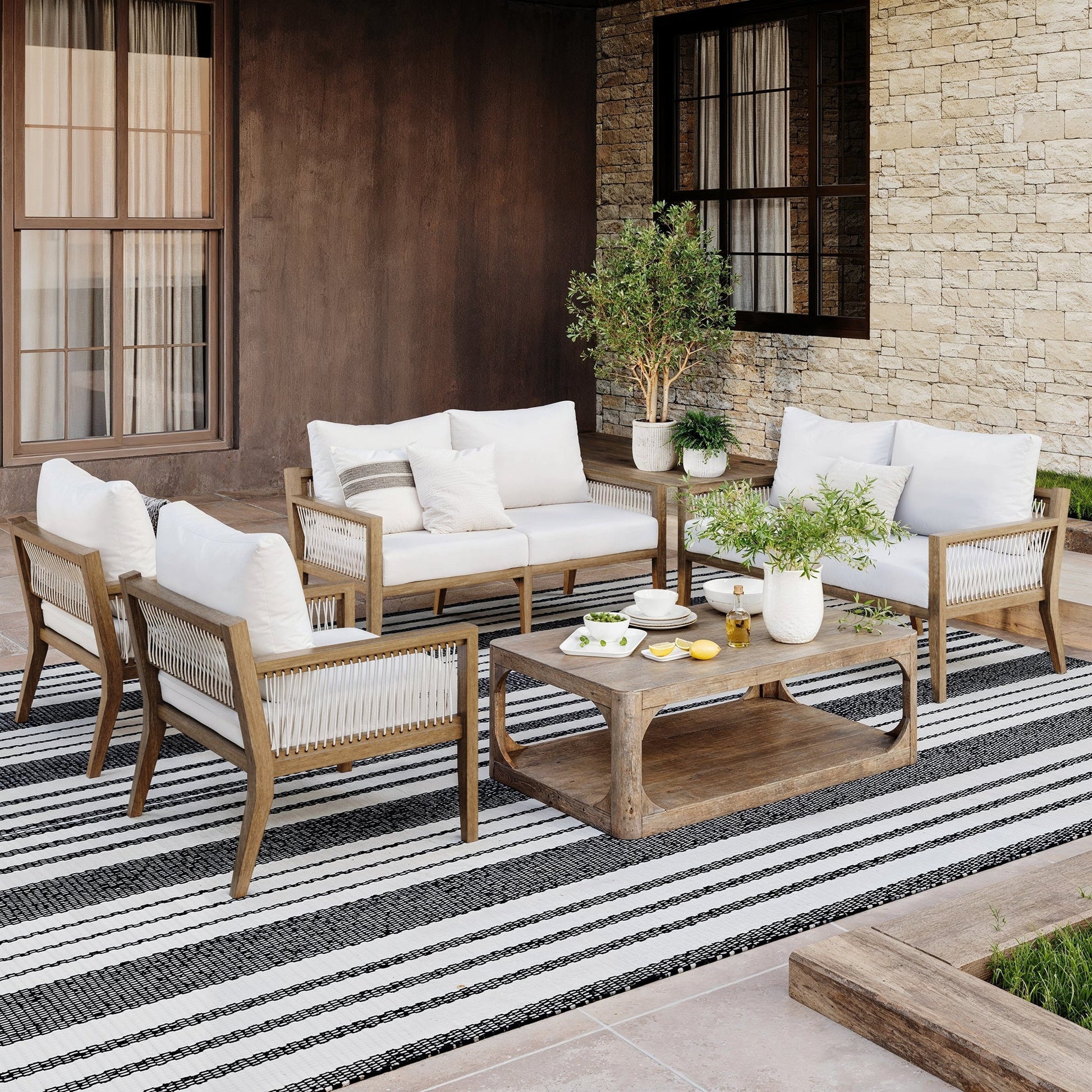 Outdoor 4 Piece Wood Patio Set Loveseats and Chairs White