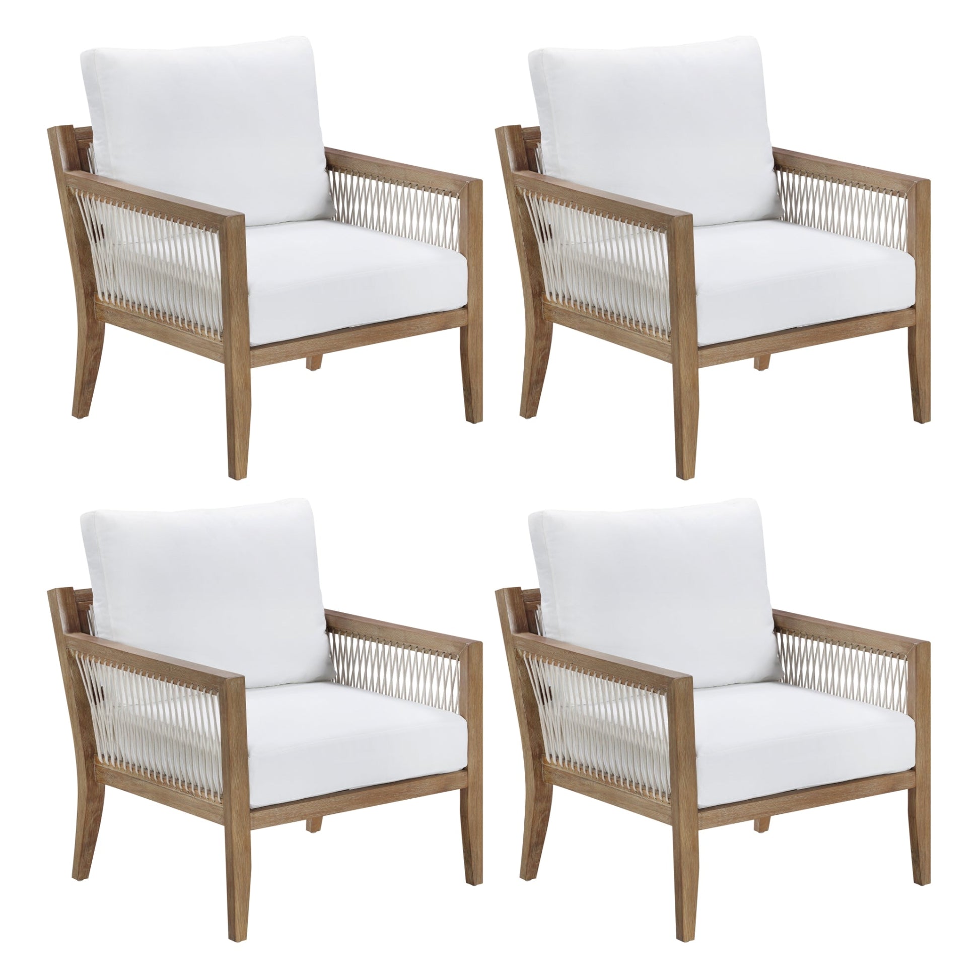 Outdoor Patio Wood Arm Chairs White (Set of 4)