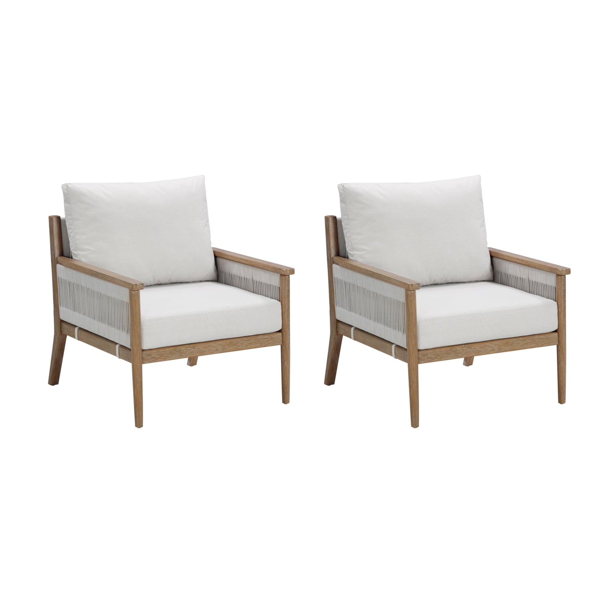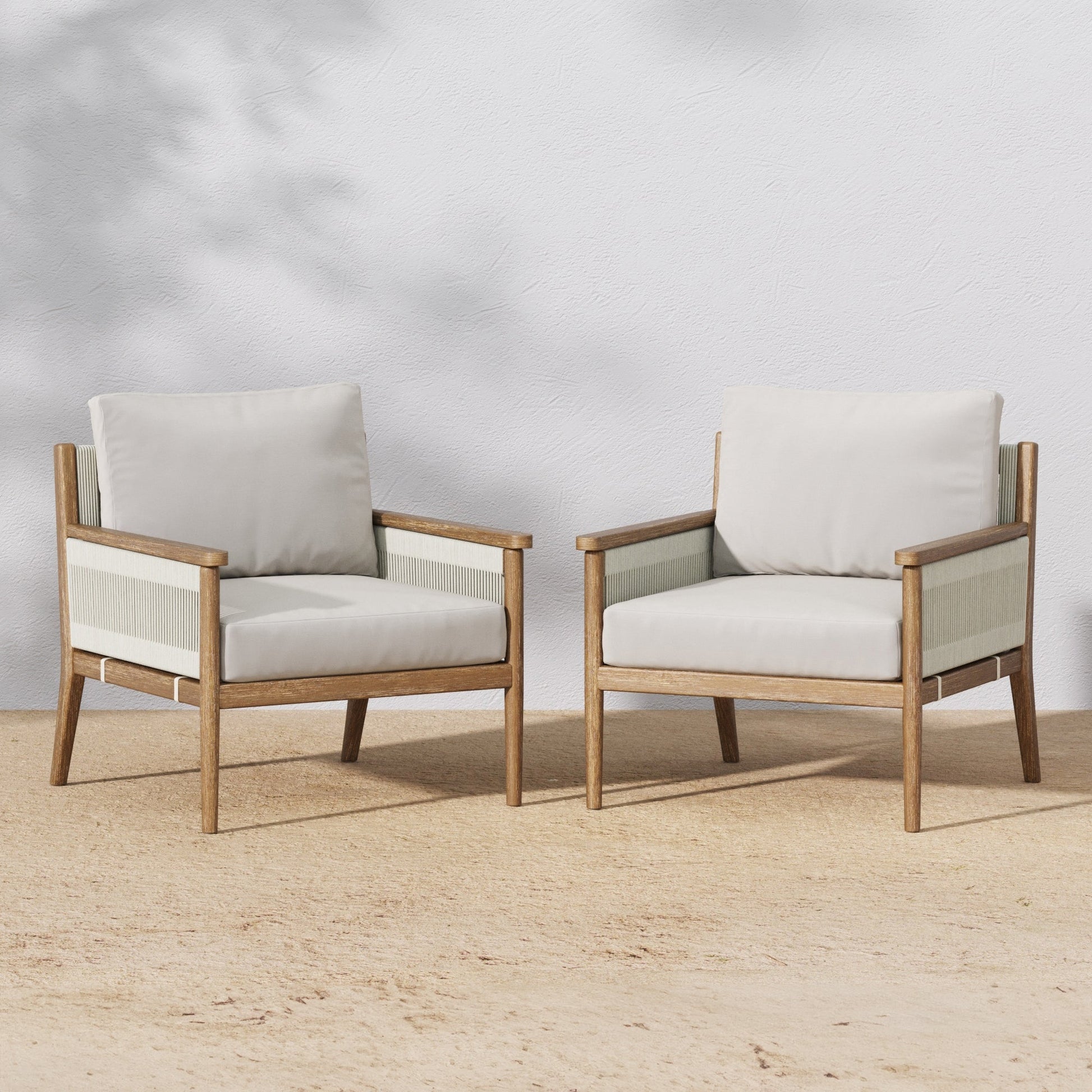 Outdoor Wood & Rope Patio Arm Chairs Light Gray (Set of 2)