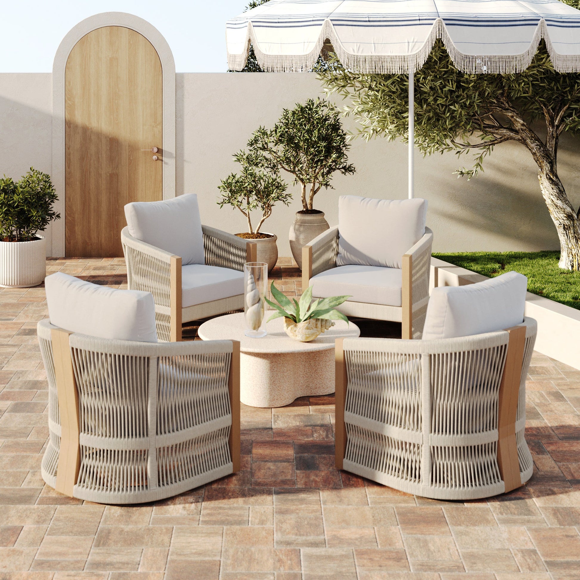 Outdoor Wood Rope Patio Arm Chairs Gray (Set of 4)