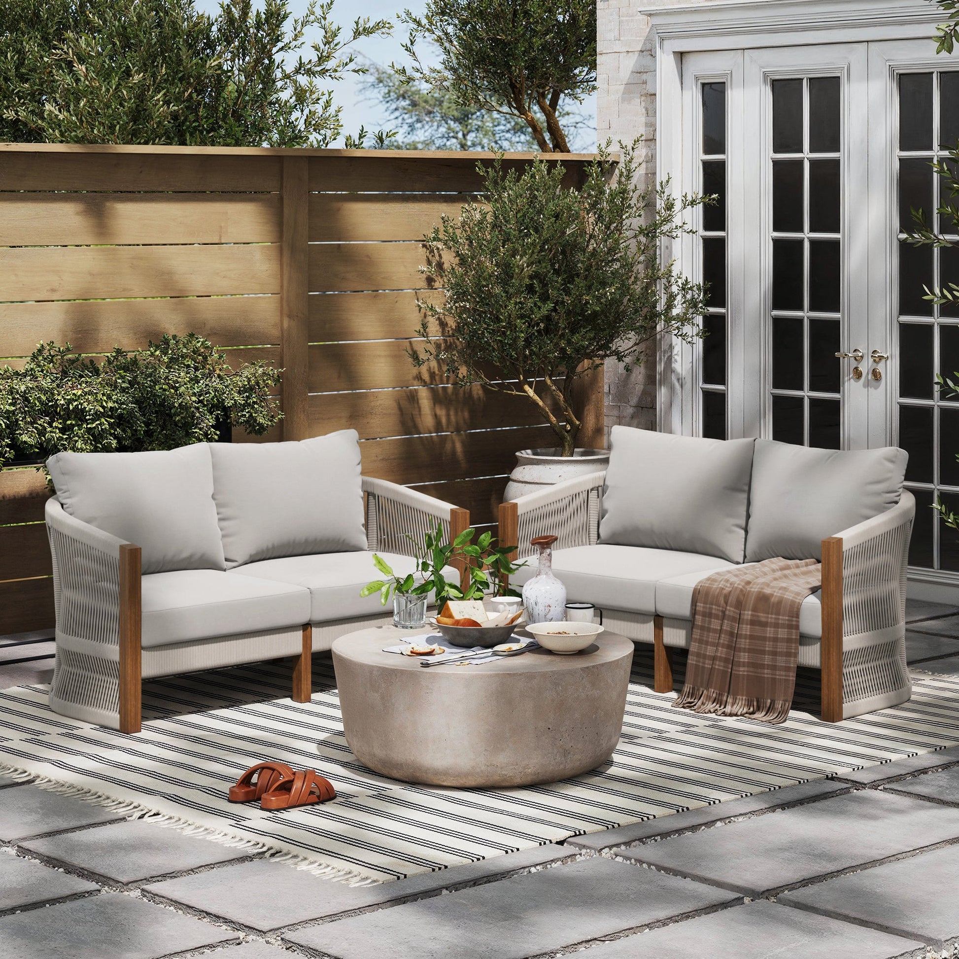 Outdoor Wood Rope Patio Loveseats Gray (Set of 2)