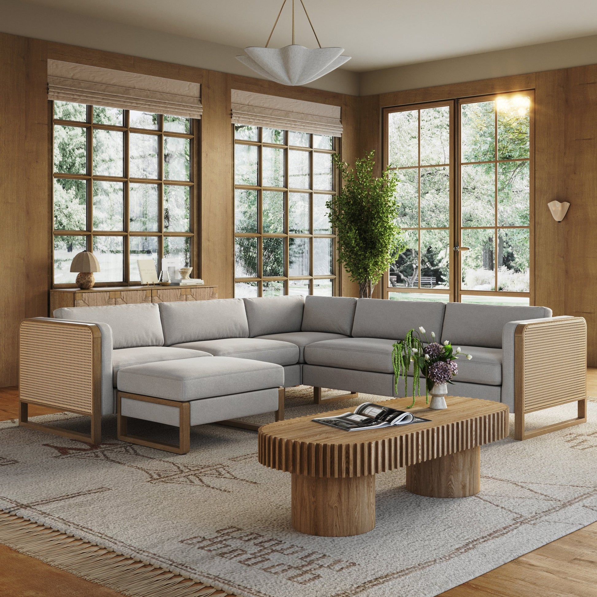 Rattan 5-Seat Sectional with Ottoman Set Wood Frame Gray