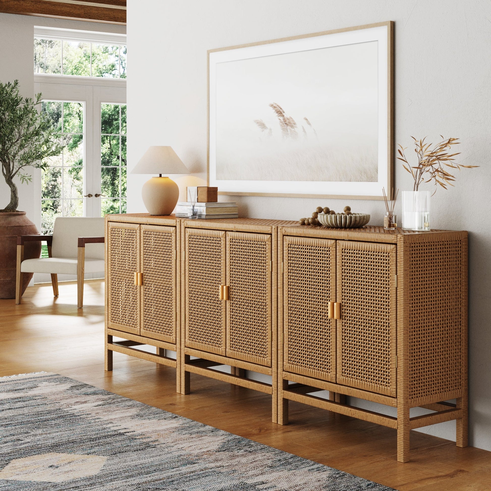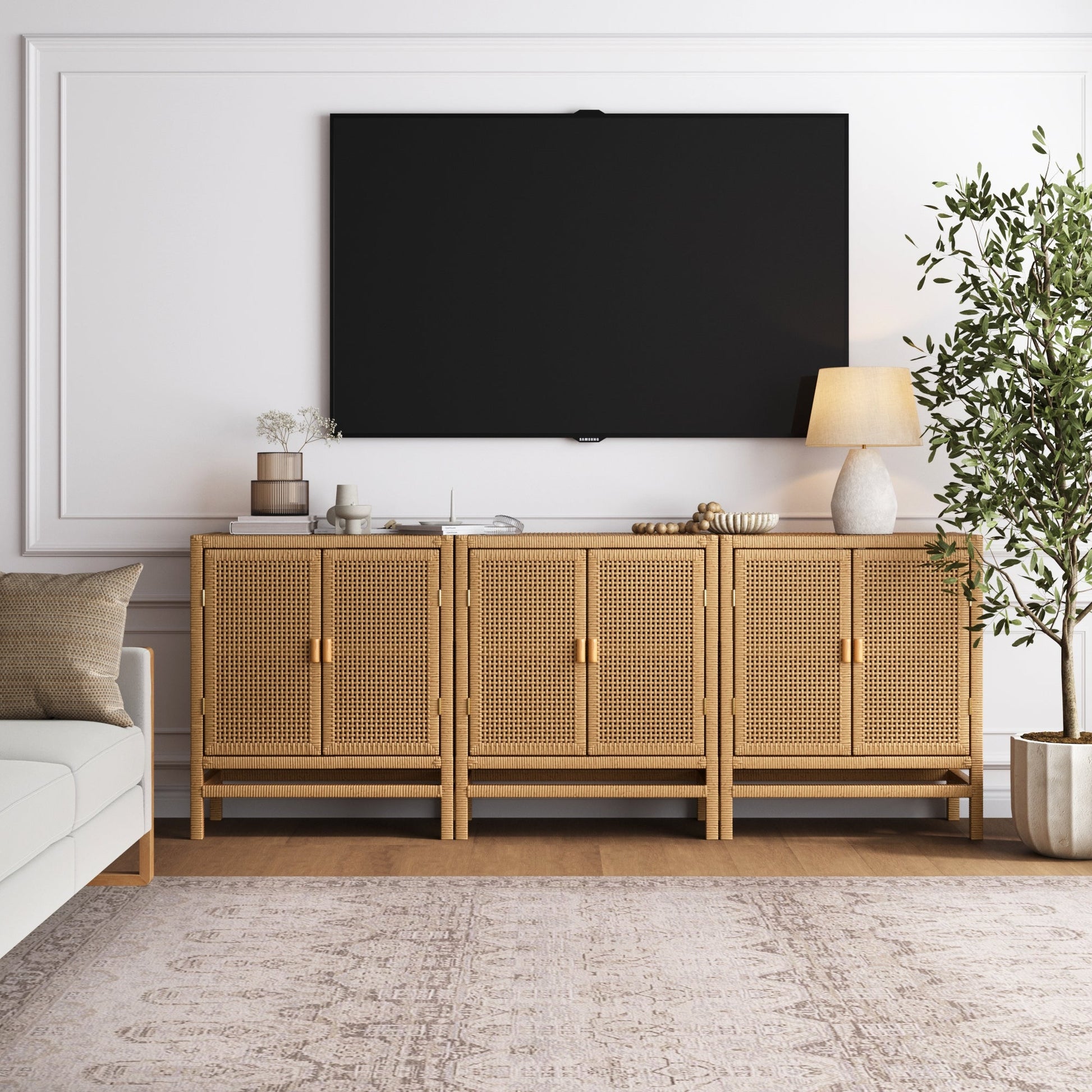 Rattan Wrapped TV Console Credenza Light Golden Oak (Set of 3)