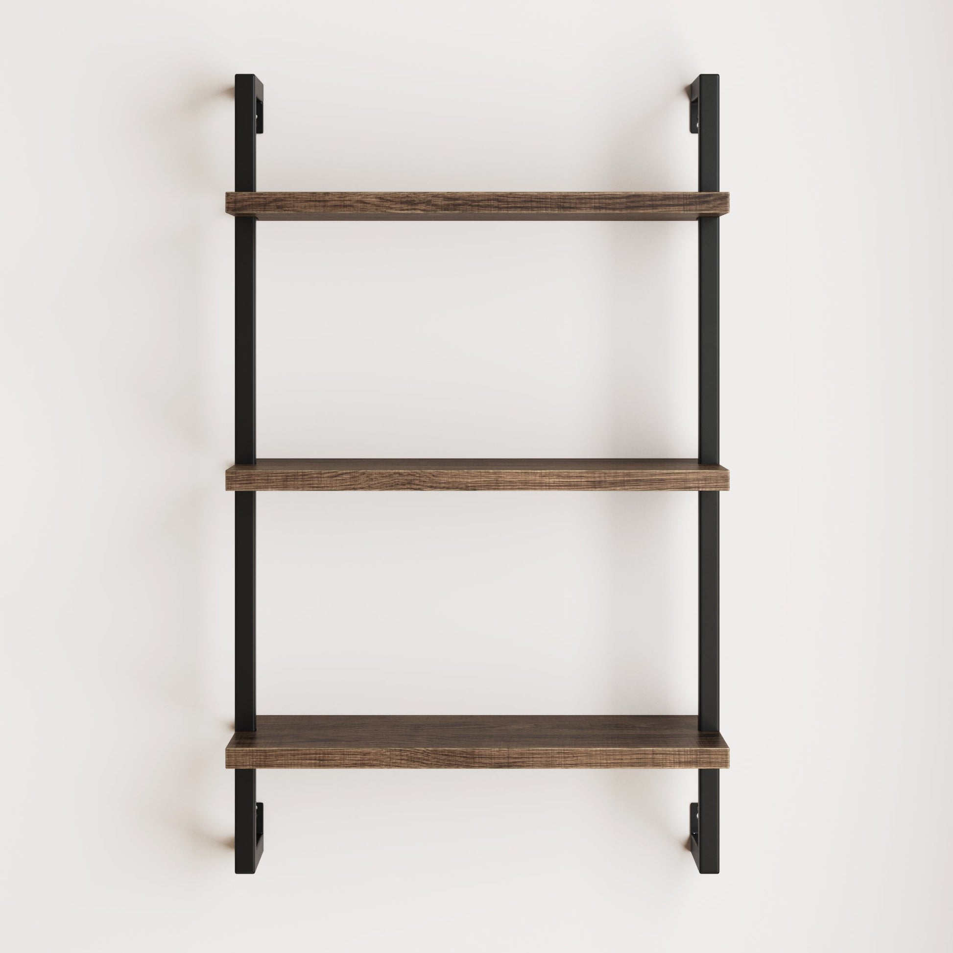 Wood & Metal 3-Shelf Floating Bookshelf Oak