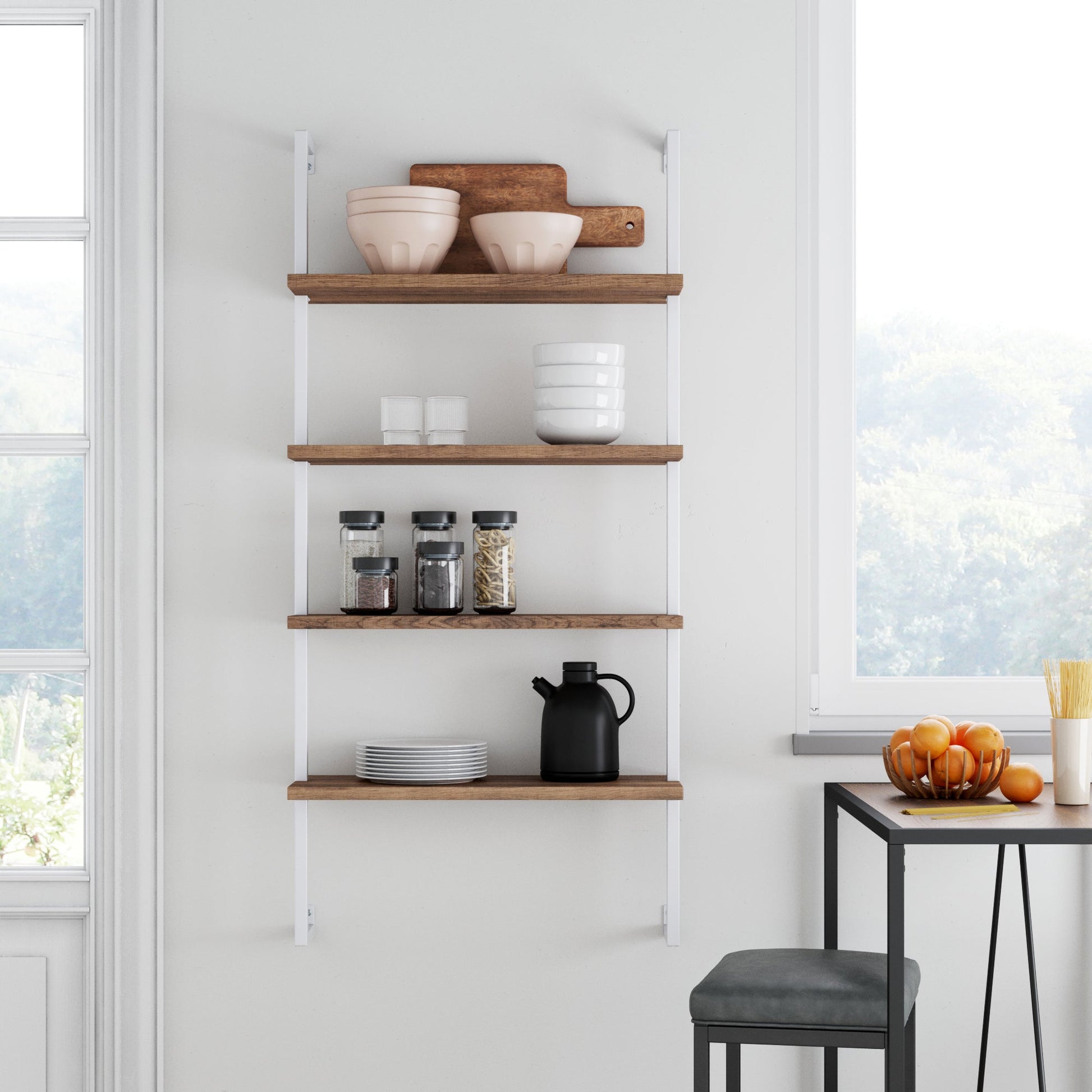 Wood & Metal 4-Shelf Floating Bookshelf Reclaimed Oak
