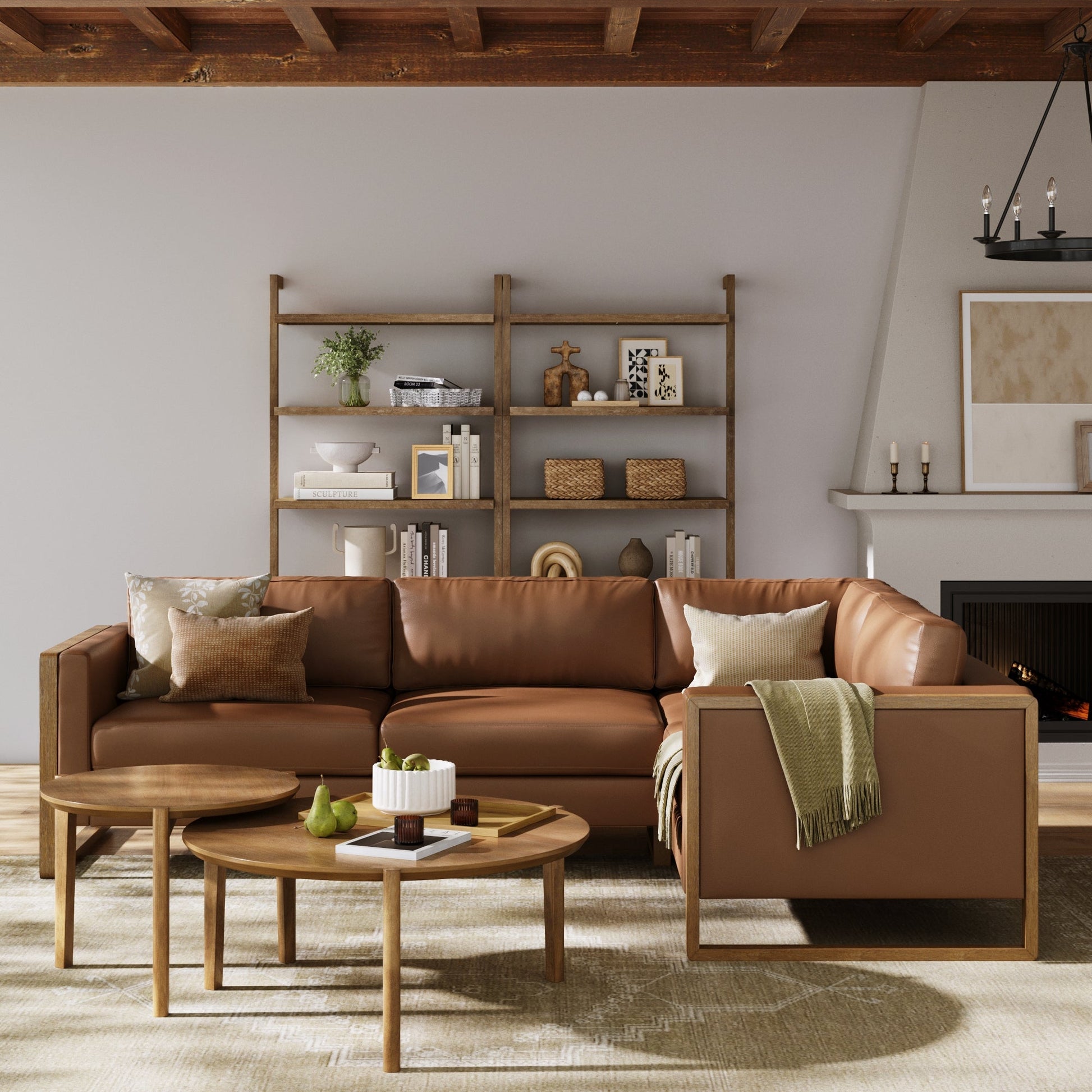 Leather 4-Seat Wood Frame Sectional Sofa Couch Camel