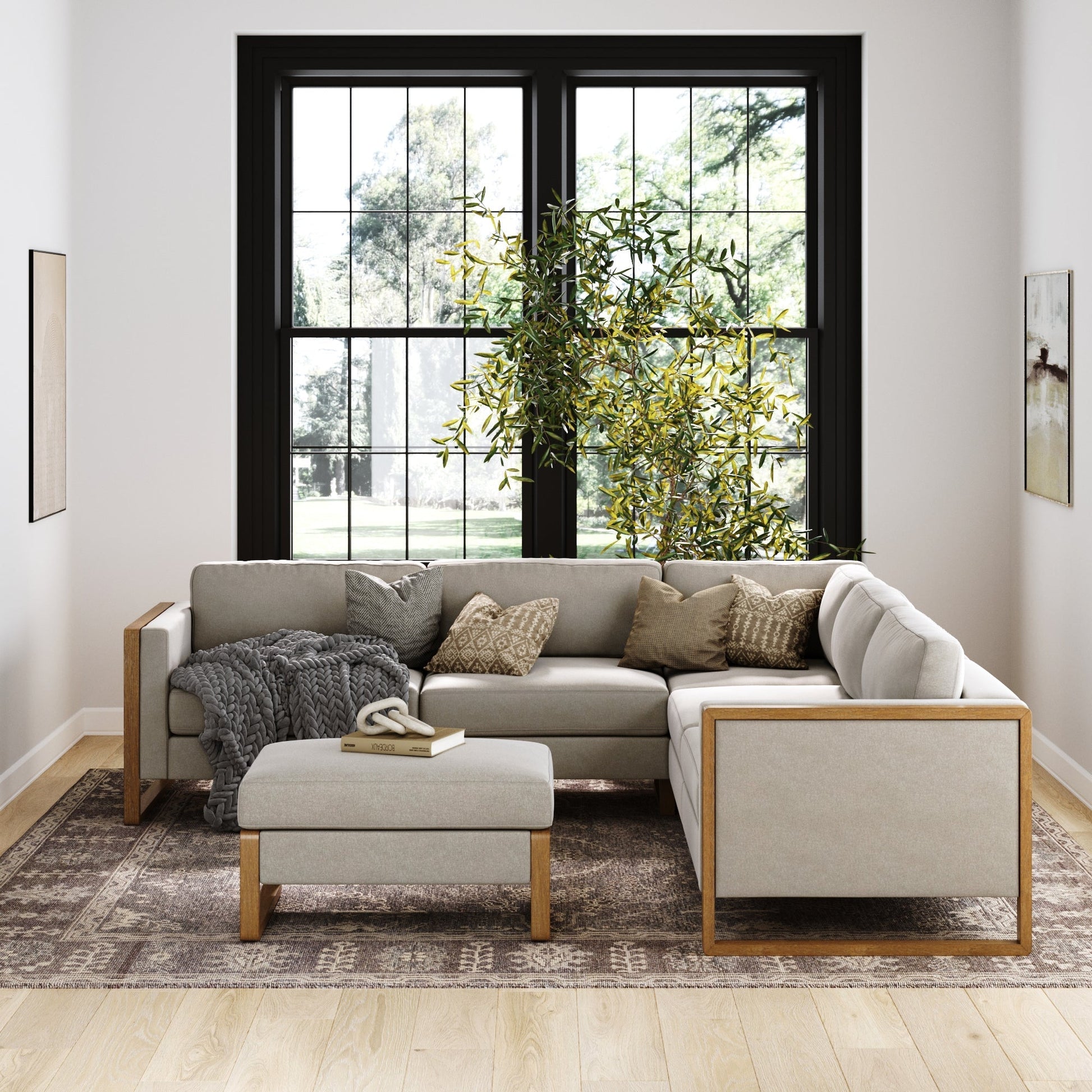 Elevate your living space with the Madison L-shaped 5-seat sectional sofa and ottoman set. With multiple sofa sizes and configurations to choose from, you have the flexibility to customize your perfect arrangement, whether you prefer a cozy loveseat or a spacious sectional. The collection's wire brushed leg finish and wood accents lend a touch of sophistication. Plus, its plush back cushions are designed for the ultimate Netflix experience. With supportive springs both in the cushions and frame, these sofas are practically saying, "We're here for the long haul!" So, go ahead and sink into the softness without a care in the world, because these sofas are all about long-lasting comfort and durability.