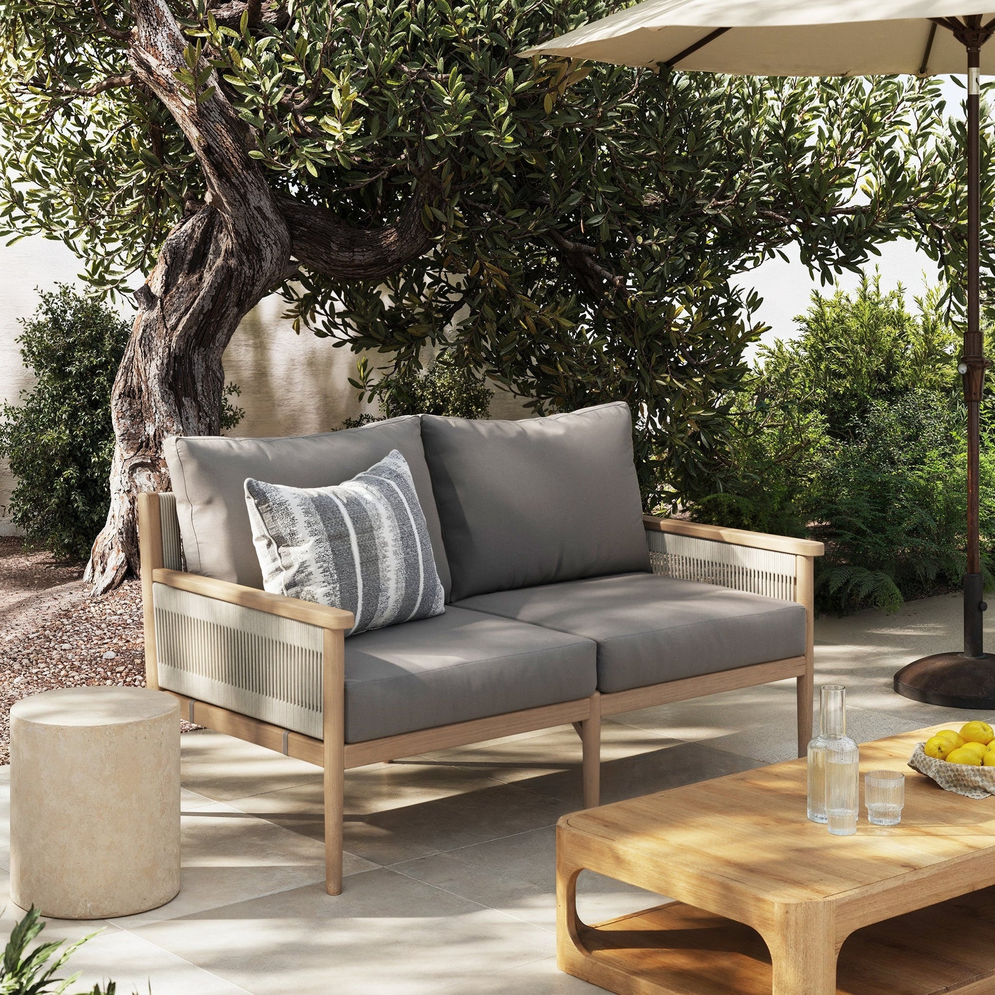 Outdoor Wood & Rope Patio Loveseat Medium Gray