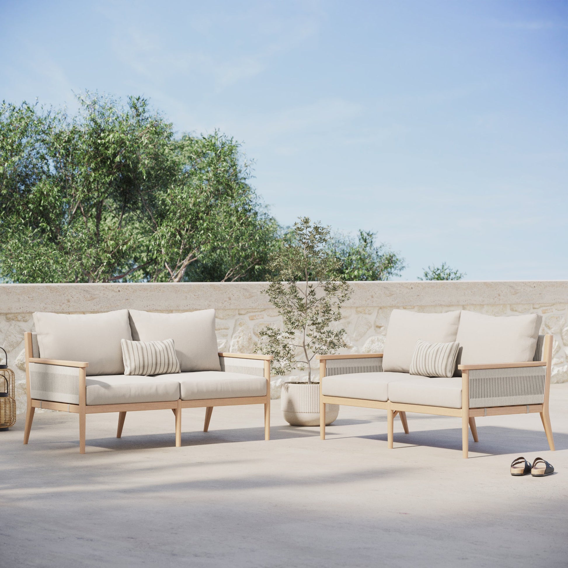 Outdoor Wood & Rope Patio Loveseats Ash White (Set of 2)